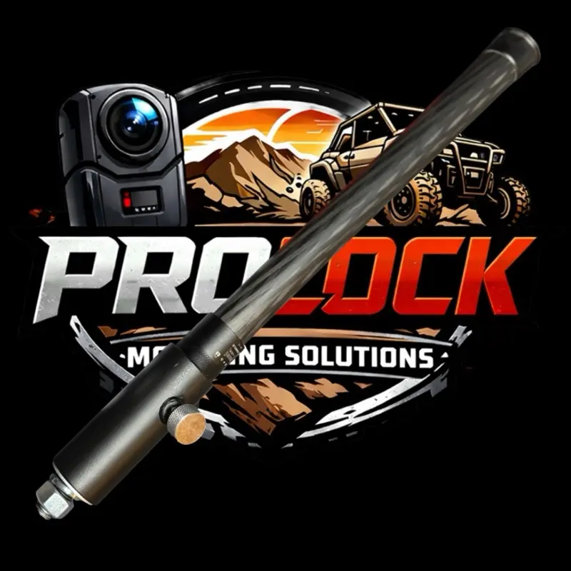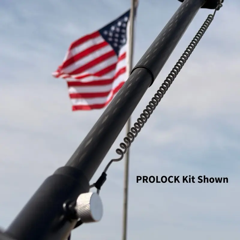 PROLOCK kit option- comes with the powder coated mounting base, 2ft telescoping carbon fiber pole and a tether cord. Pole uses standard 1/4-20 camera threads for camera installation