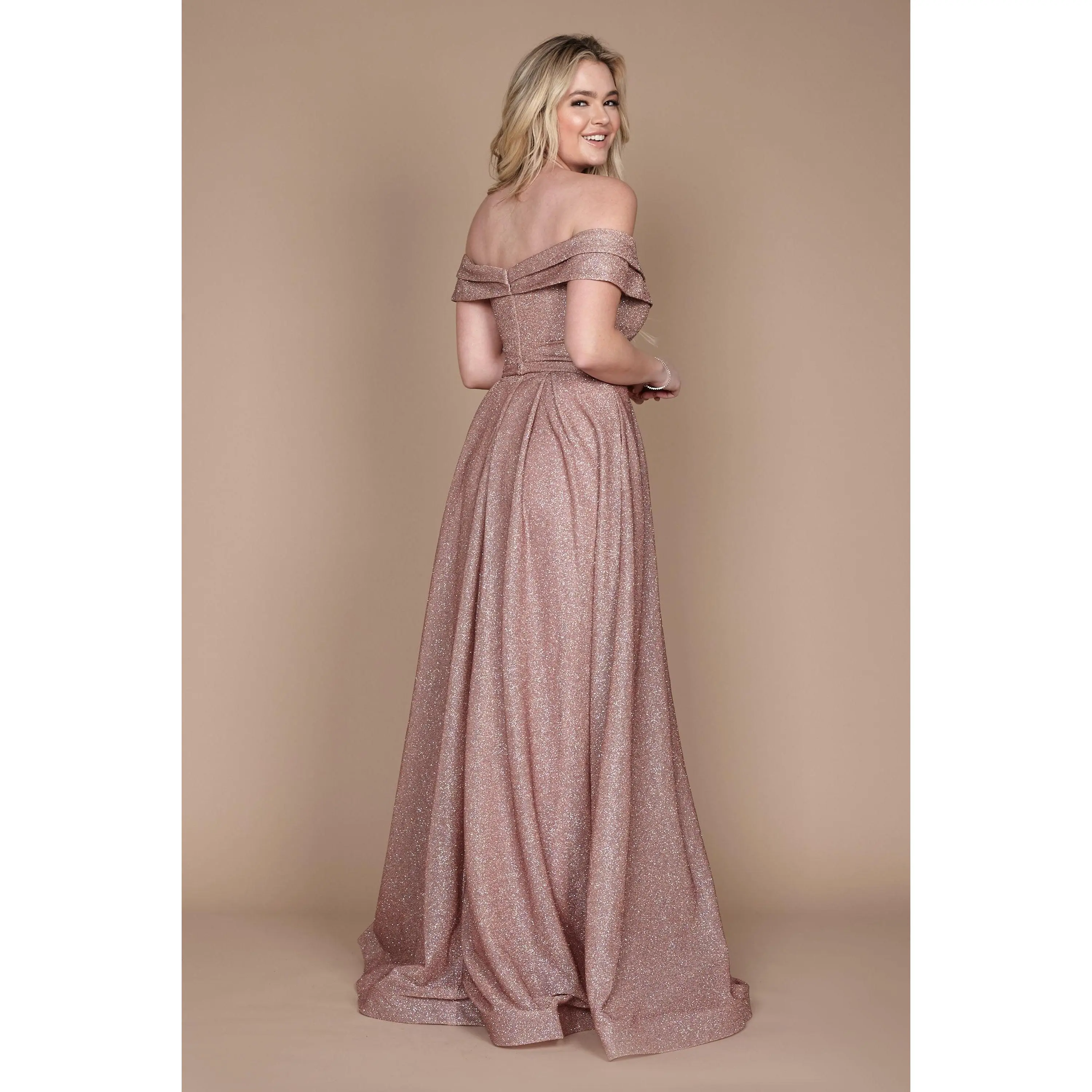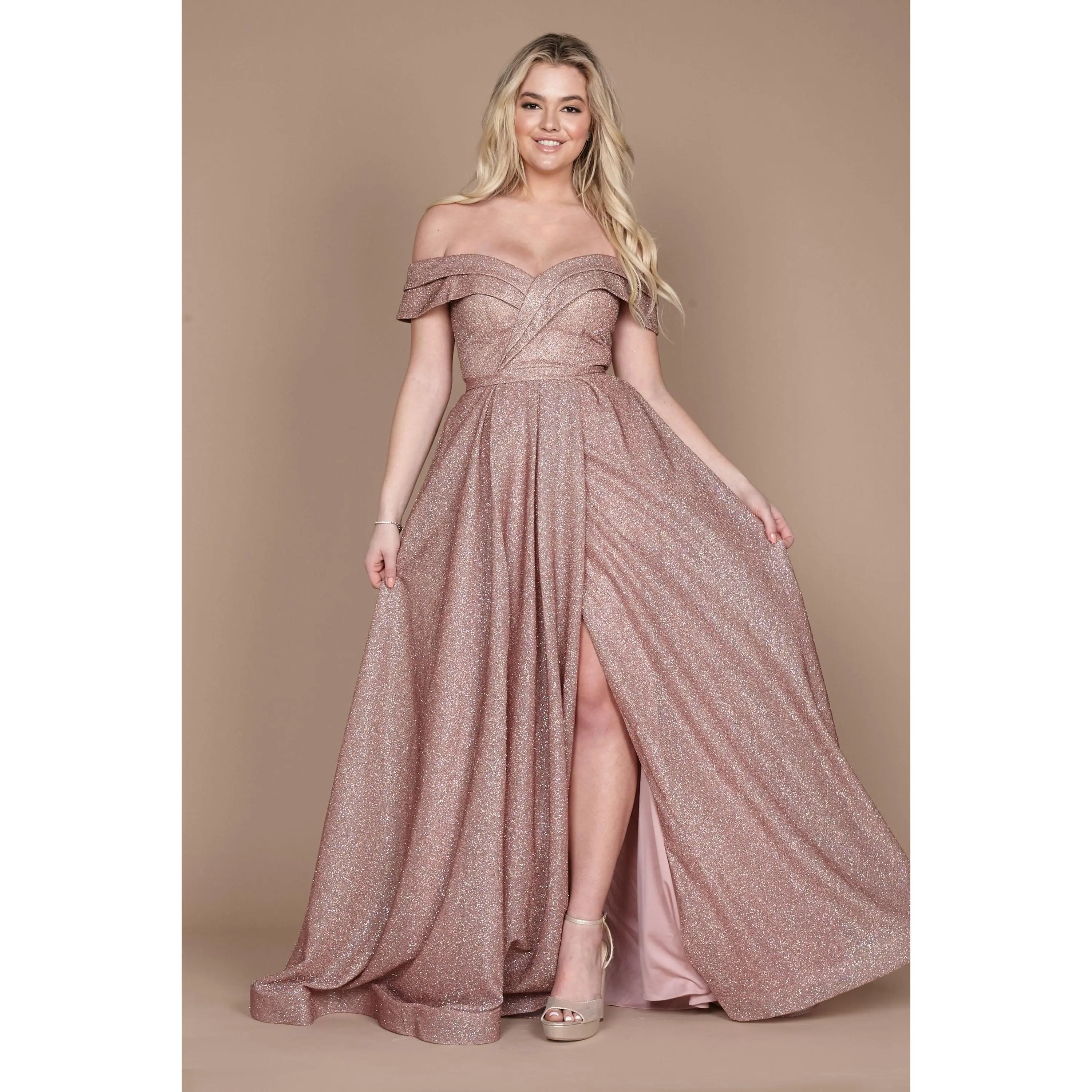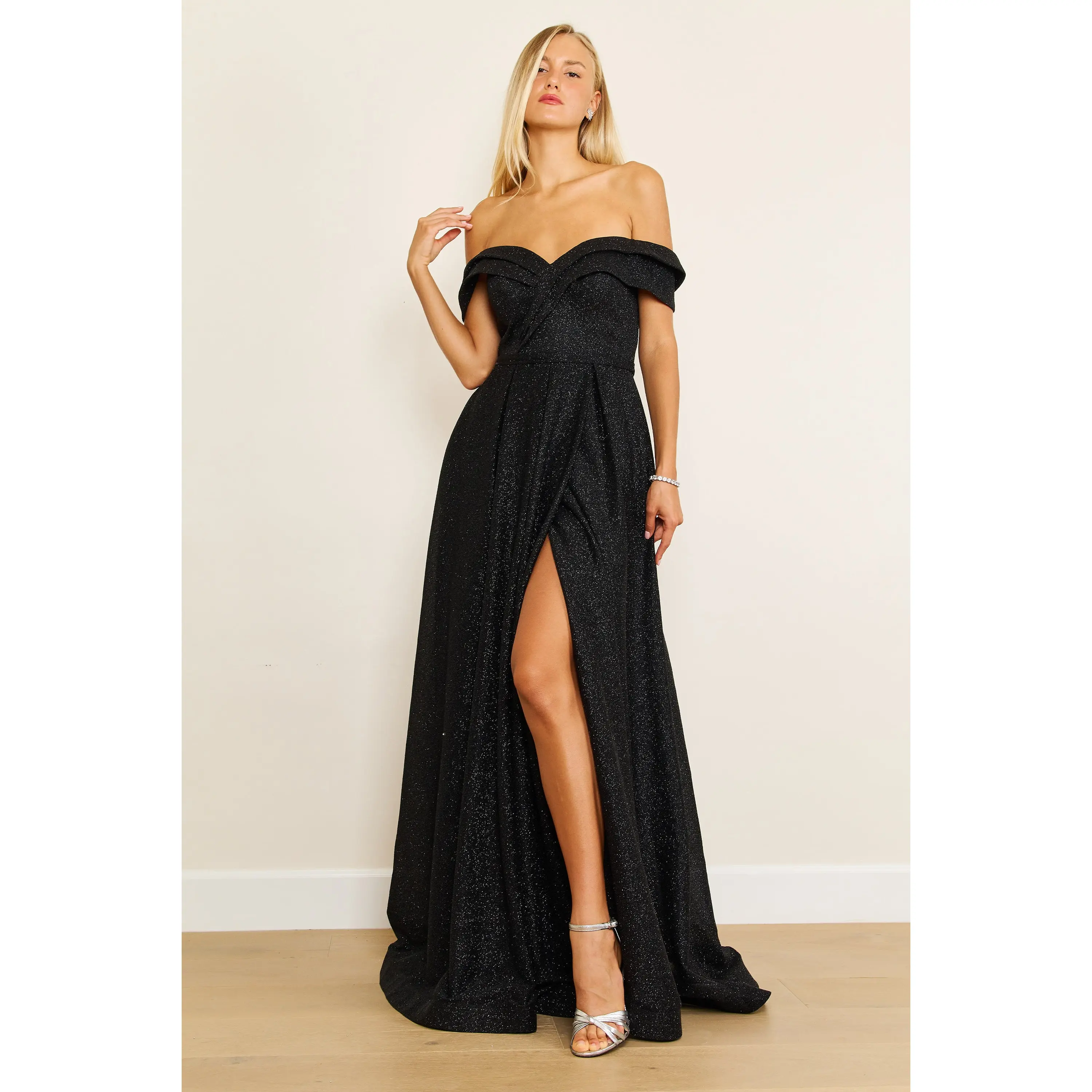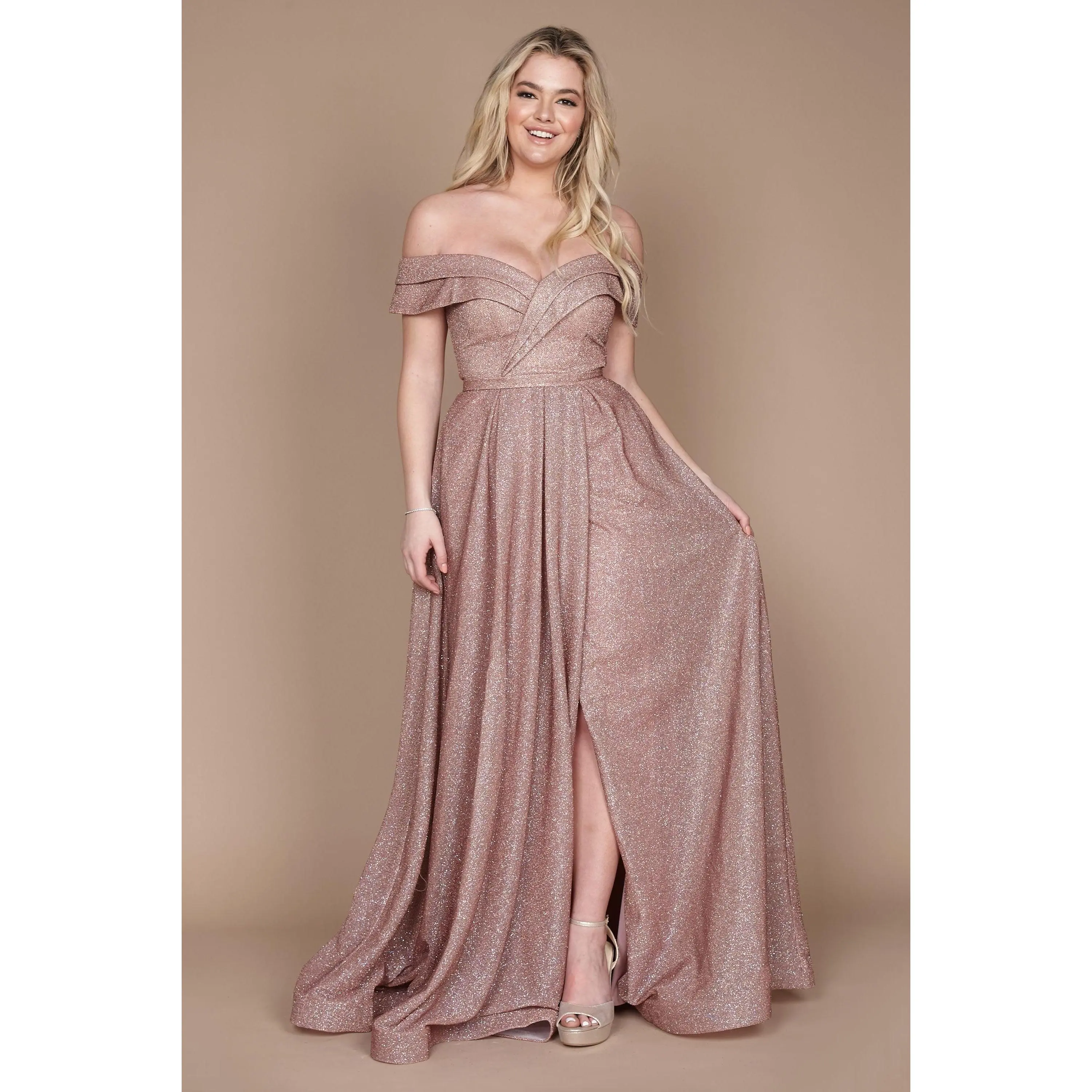 You'll want to wear this elegant formal dress over and over again because of its timeless, straightforward design. The off-shoulder sleeves, sweetheart neckline, side pockets (we know! ), and high front slit on this Dylan & Davids dress are all hallmark features. available in sizes 4 to 24 and in the colors mauve and black. Perfect for formal gatherings like weddings and parties. This dress, which is made of a glittery, shimmering material, will shine brilliantly at any event.