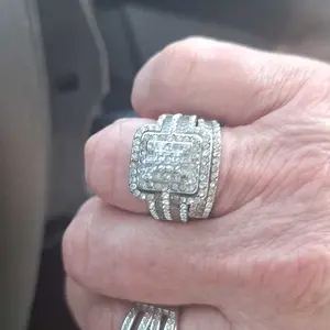 This picture of this ring does not do it justice. It is absolutely stunning and I am in love with it. As a matter of fact, I wore it today with another ring that I received that I ordered and they locked absolutely beautiful.