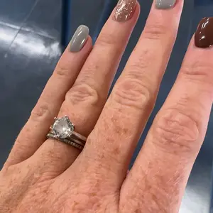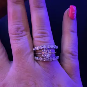 Disappointed in the way the rings sit together. The Solitaire diamond sits to low in the middle of the bands. But in the plus side the size was good and it was a very shiny set.