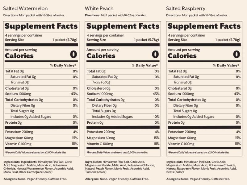 A salty and refreshing flavor with a base of pure Himalayan pink salt, potassium, and magnesium. Designed to support daily hydration needs in training, fasting, low carb, and keto diets.