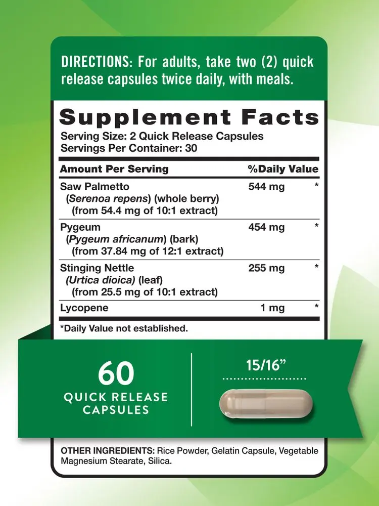 Nature's Truth now carries a maximum support formula with all 3 of these dynamic herbs!* Our advanced, Extra-Strength, Prostaid Herbal Complex is stacked with a balanced spectrum of herbs with potent plant properties. Our unique formula offers a combo of Saw Palmetto, Pygeum and Lycopene in fast absorbing Quick-Release Capsules. Nature's Truth is the ultimate brand for herbal supplements and real ingredients from trusted sources. Add this elite formula to your routine today!