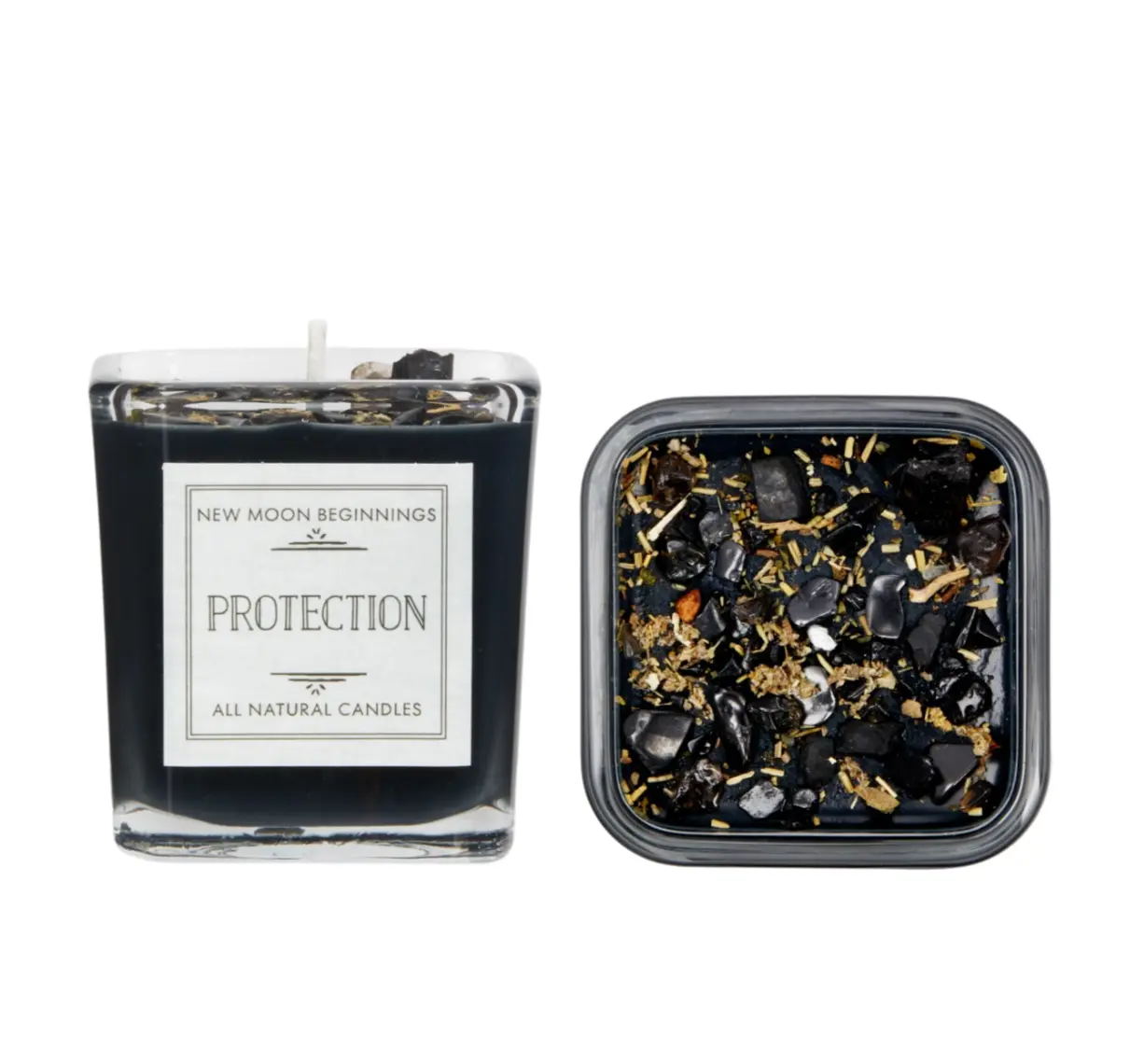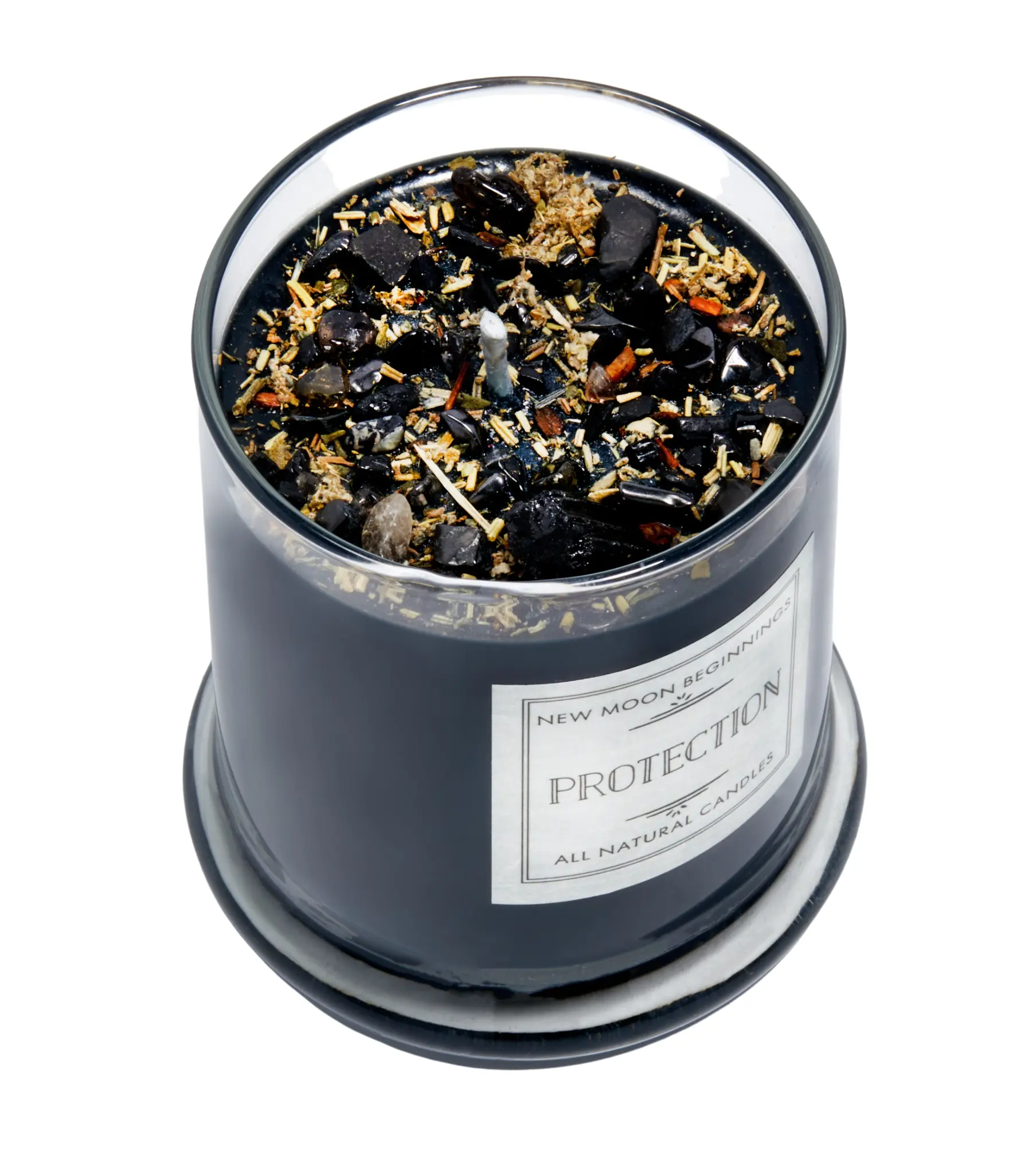 Protection Candle - Crystal & Herb Candles - Protection crystal candle - Aromatherapy Candles - soy candle - black candle