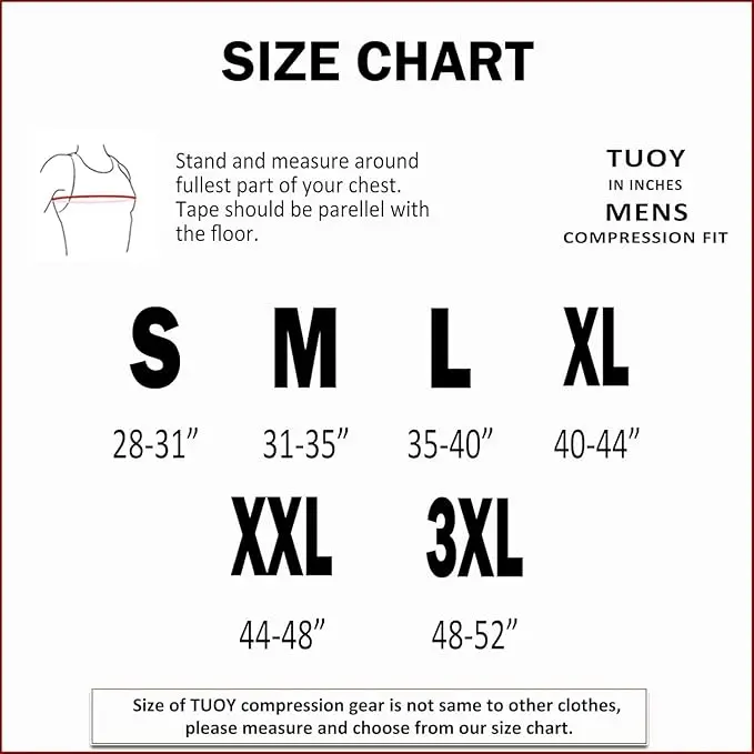 ·Fit Chest Size: S=28-31". M=31-35". L=35-40". XL=40-44". XXL=44-48". 3X-Large=48-52". We're kindly inform you to make sure to measure your chest circumference before ordering. It's normal feeling tight on your first try, you'll feel better on next wears.