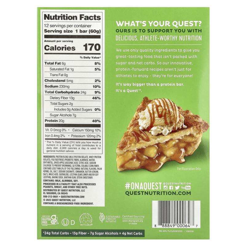 Quest Nutrition Protein Bar, Apple Pie, 12 Bars, 2.12 oz (60 g) Each