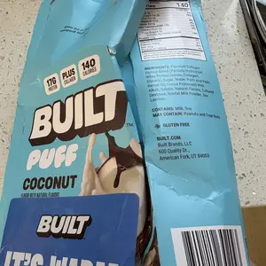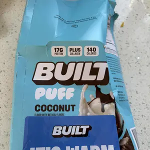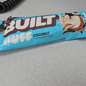 Escape to paradise with Built's Coconut Puff Protein Bar, a perfect blend of tropical coconut and rich, chocolatey goodness.