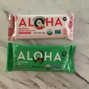 The raspberry white chocolate bar might just be my favorite ALOHA protein bar! It’s the perfect amount of raspberry and the thin white chocolate glaze is just the right amount. I wish I would’ve bought more boxes before it sold out!