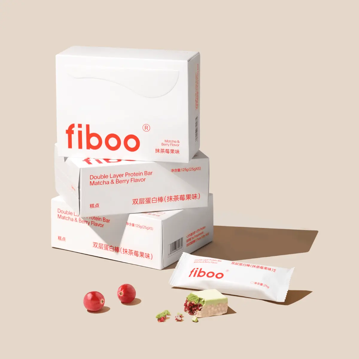5. FIBOO Double Layer Protein Bars, Matcha Strawberry Flavor, 5pcs