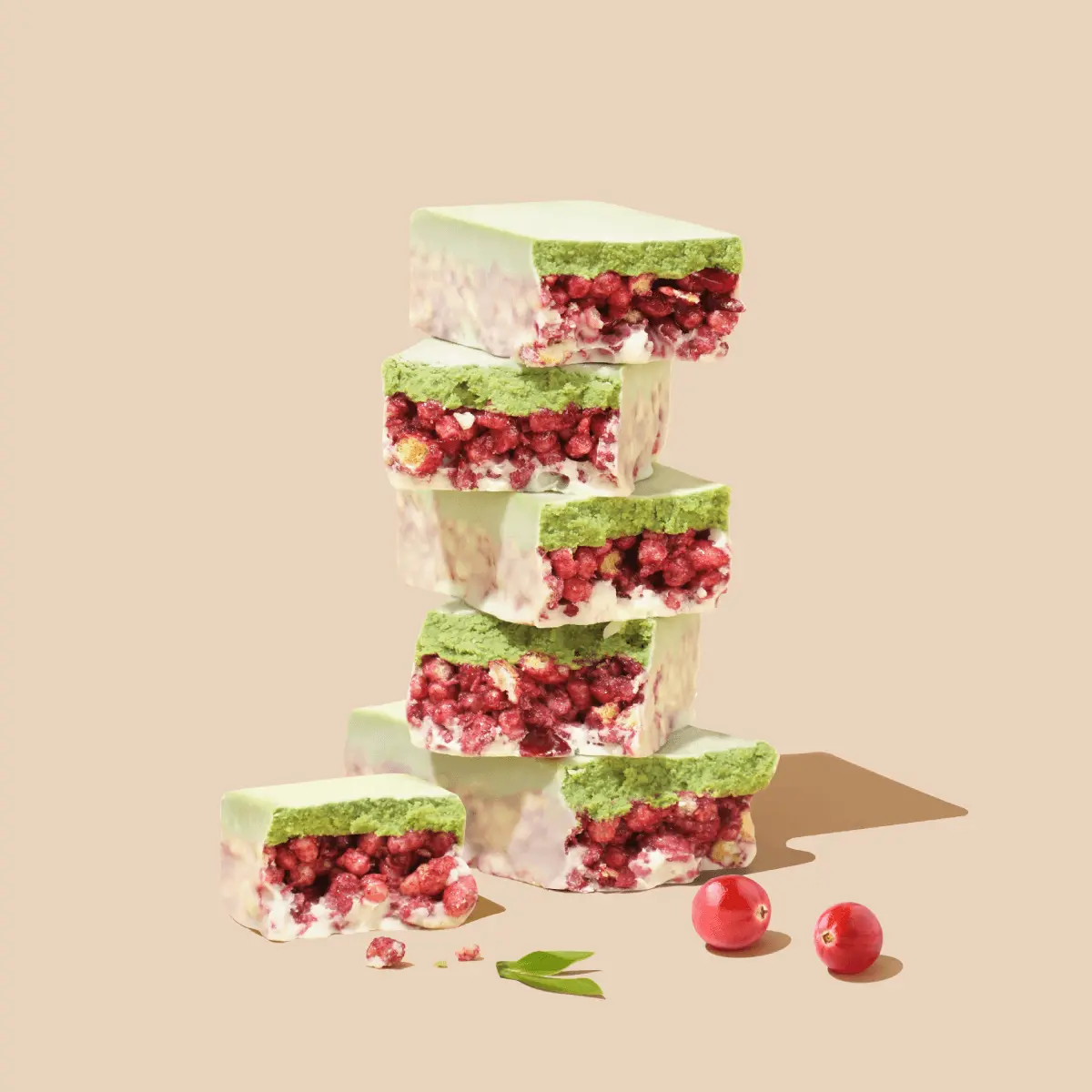 ·Double-layered with a yogurt coating outside, infused with a robust matcha berry aroma, and complemented by crispy grain particles! 🤤