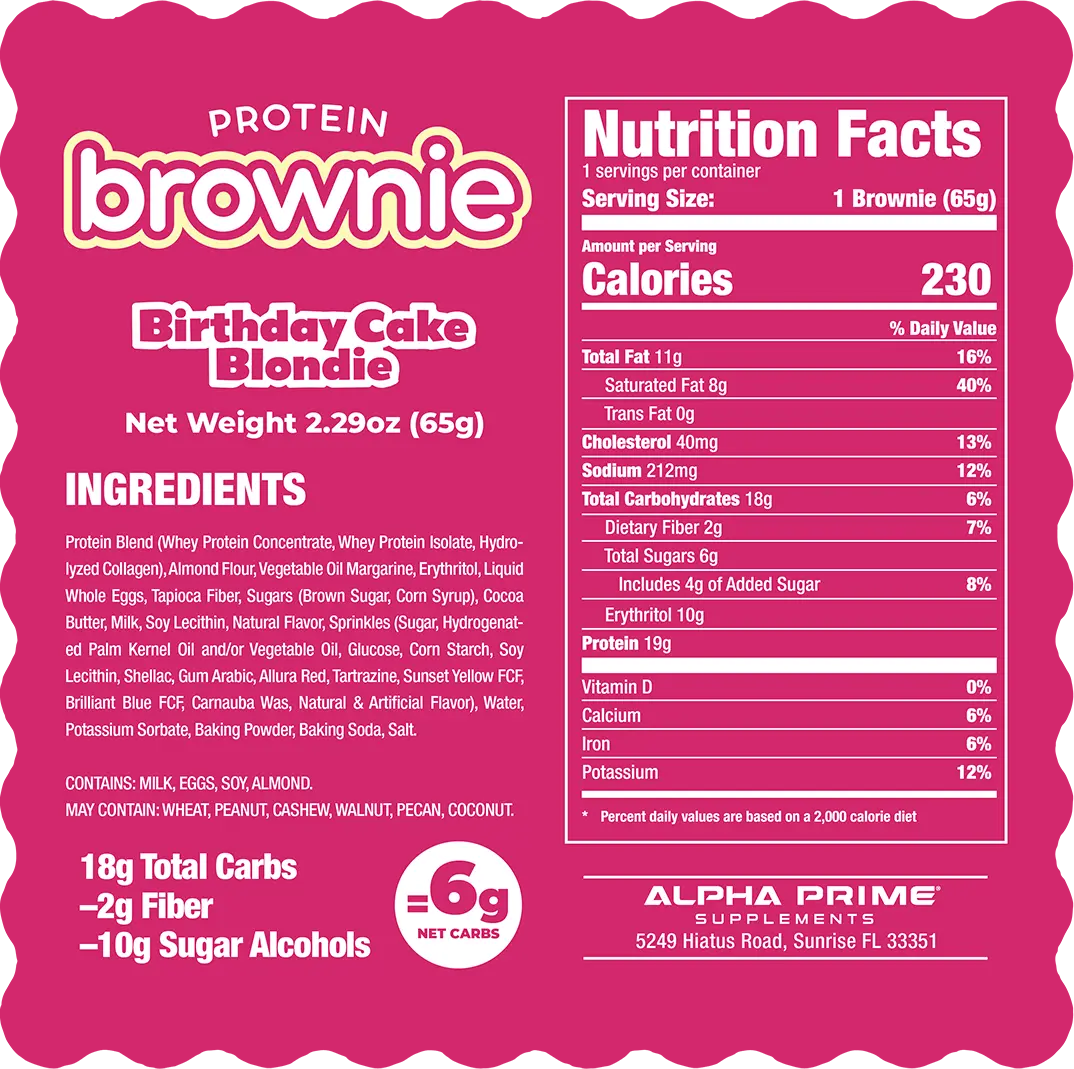 I’ve tried the other Prime Bites flavors like chocolate donut and blueberry, so had to buy the new Birthday Cake brownies! 19 grams of protein with collagen. A wonderful mid day treat. Delicious with low sugar and lots of protein! Try a box!