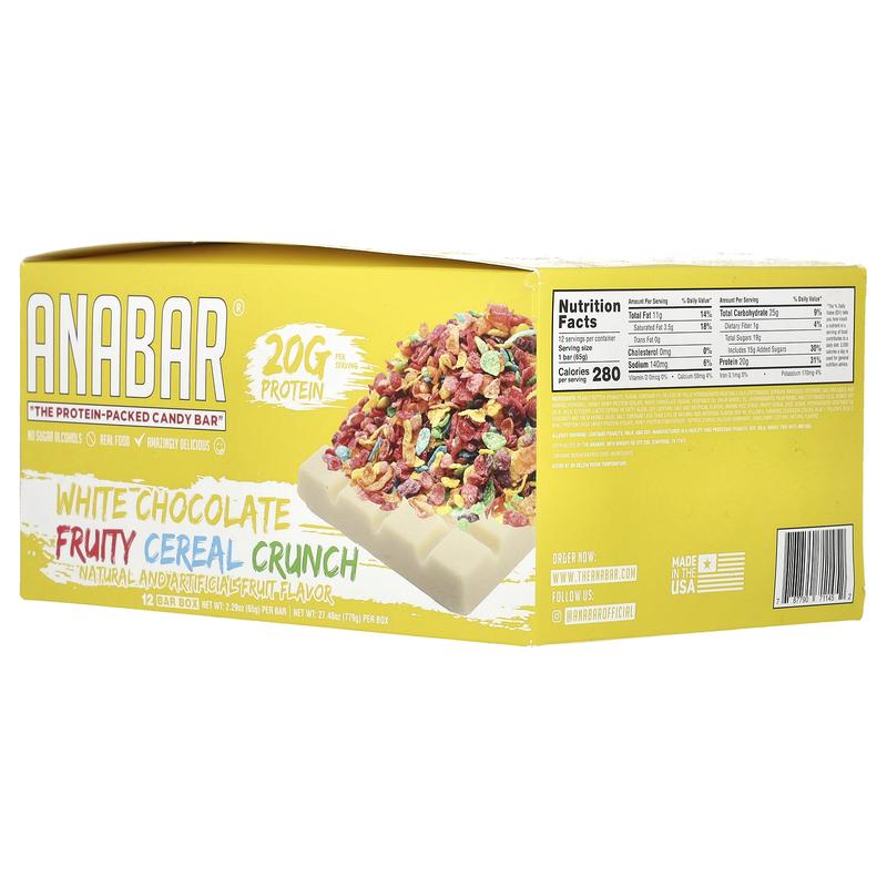The Anabar The Protein-Packed Candy Bar®, White Chocolate Fruity Cereal Crunch, 12 Bars, 2.29 oz (65 g) Each