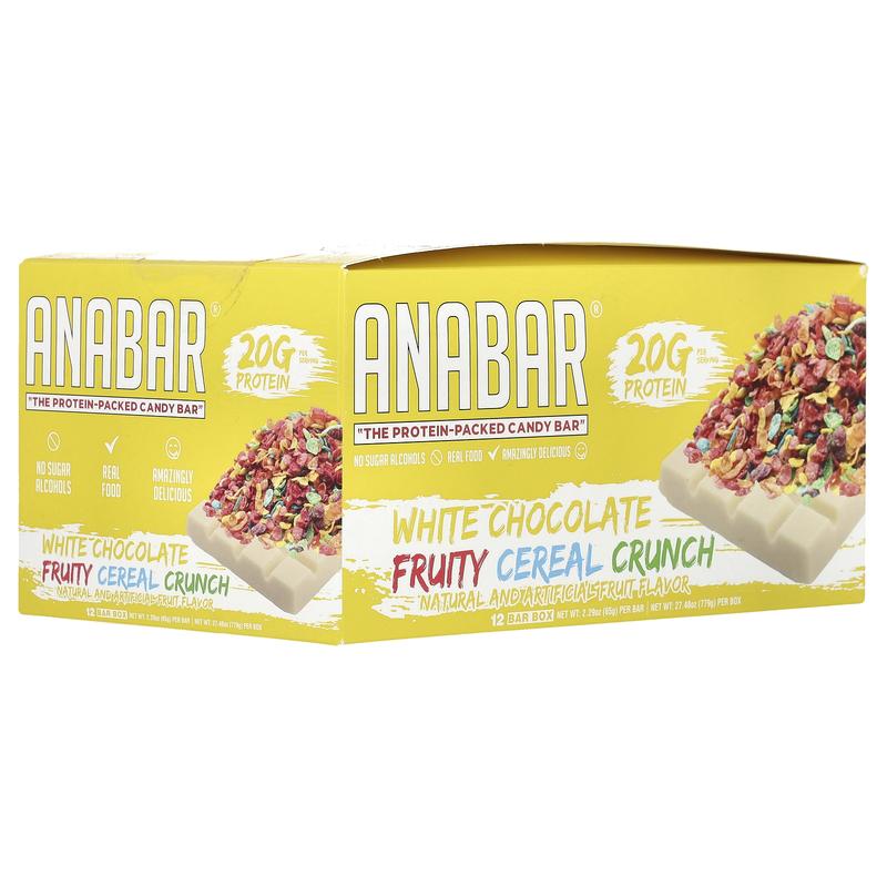 5. The Anabar The Protein-Packed Candy Bar®, White Chocolate Fruity Cereal Crunch, 12 Bars, 2.29 oz (65 g) Each