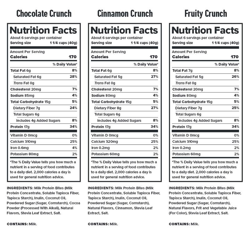 This protein cereal has been a game changer for helping nail my macros and satisfy my sweet tooth! The serving sizes are huge for the macros and whether it's a night cap or quick snack, any of the three flavors will HIT. Fruity Crunch disappeared the fastest for me but the others are bomb also. I'm almost completely out and I'm stoked to stock back up!