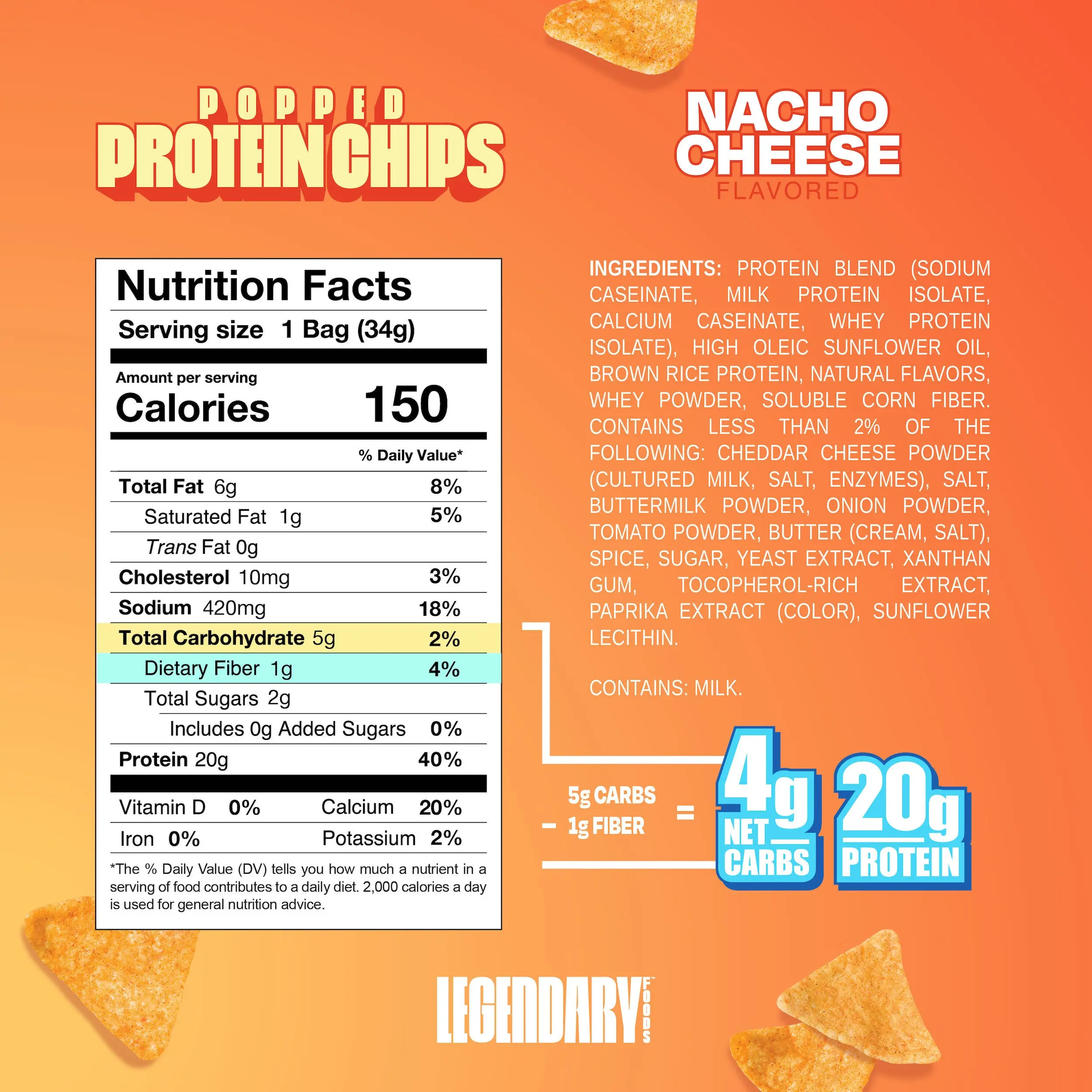 Great macros. I am not a big chip person, but when I do I prefer Legendary brand over their competitors. Legendary's chips are a rice cake style chip which works for me as I love rice cakes. Deff worth a try!!