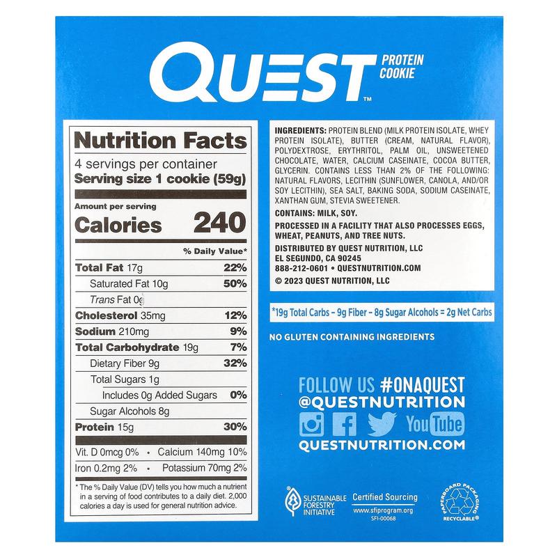 Quest Nutrition Protein Cookie, Chocolate Chip, 4 Cookies, 2.08 oz (59 g) Each
