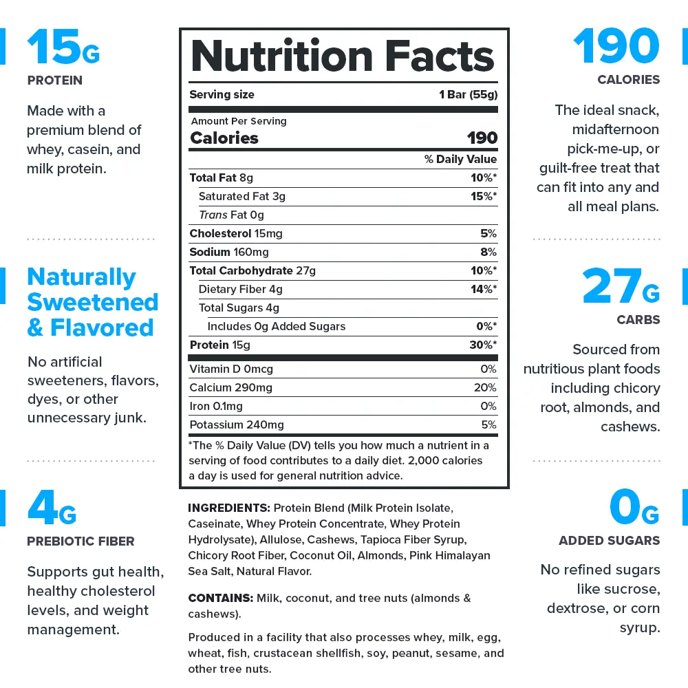 The macros on these bars are fairly good when it comes to protein/Cal ratio. They aren’t exactly like a rice crispy treat, but they are convenient on the go, have clean ingredients, and very tasty. I would (and likely will) buy again!