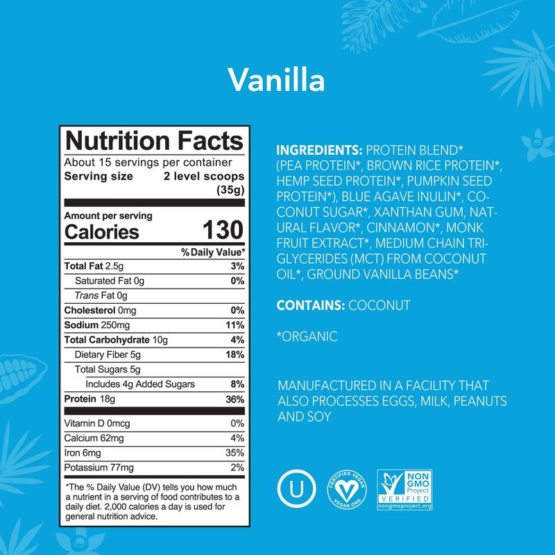 It has 18 grams of protein and only 5 grams of sugar and it’s organic. I eat their protein bars as well and love those too!