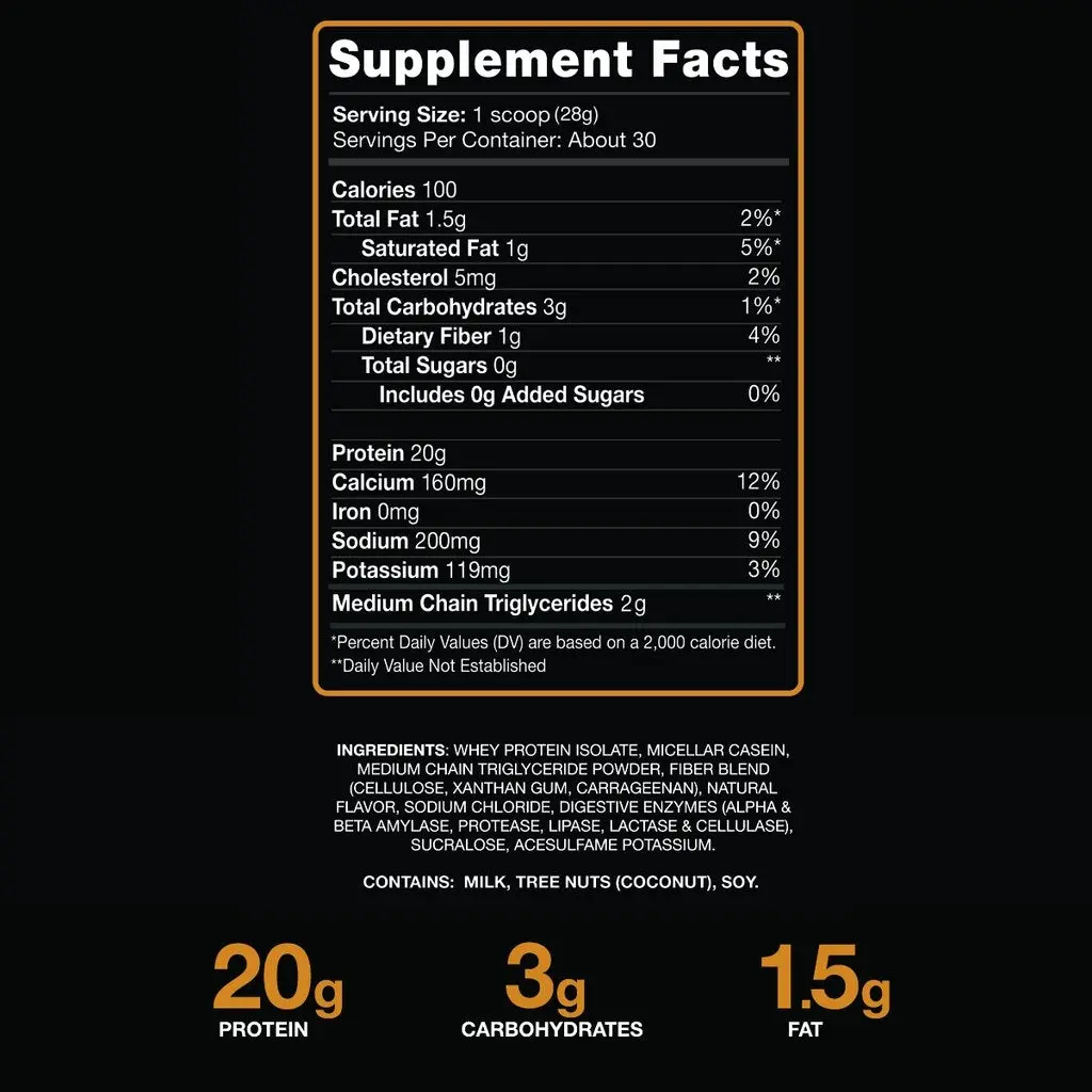 Directions - Shake it, bake it, blend it, or freeze it—your options are endless! With 20g of high-quality protein and 1g of MCT per serving, this protein powder is your all-in-one solution for fueling your body.