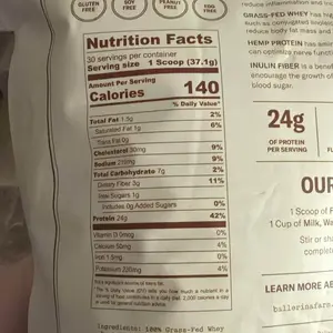 100% Grass-Fed Whey Protein, Strawberry, Inulin Chicory Root, Collagen, Hemp Protein, Colostrum, Vanilla Extract, Unrefined Sea Salt, Stevia Leaf, Monk Fruit