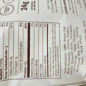 100% Grass-Fed Whey Protein, Inulin Chicory Root, Collagen, Vanilla Extract, Hemp Protein, Colostrum, Unrefined Sea Salt, Stevia Leaf, Ground Vanilla Bean, Monk Fruit