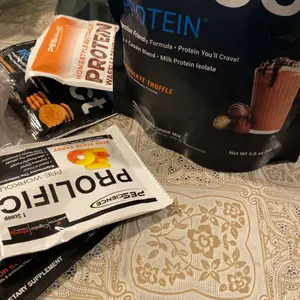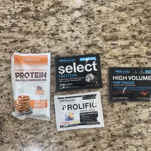 My package was delivered on time and they also threw in 4 sample packs for free. So far I’ve bought the snickerdoodle, Frosted sugar cookie, and chocolate truffle from pescience and they’re all amazing. My favorite is the frosted sugar cookie. I already tried the other 2 samples