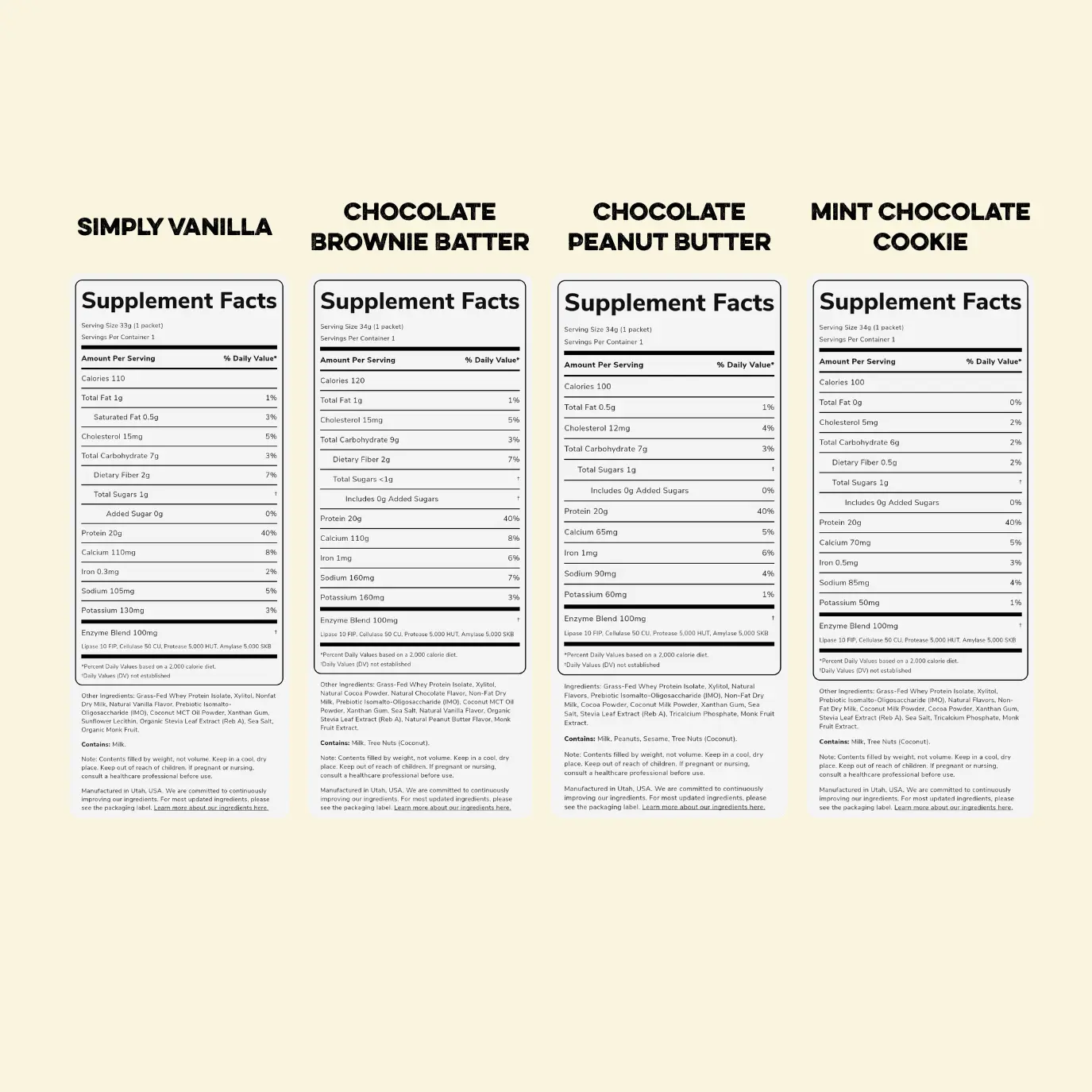 IngredientsGrass-Fed Whey Protein Isolate,Xylitol,Non-Fat Dry Milk Powder,Natural Vanilla Flavor,Prebiotic Isomalto-Oligosaccharide (IMO),Coconut MCT Oil Powder,Xanthan Gum,Sunflower Lecithin,Organic Stevia Leaf Extract (Reb A),Sea Salt,Organic Monk Fruit Extract.