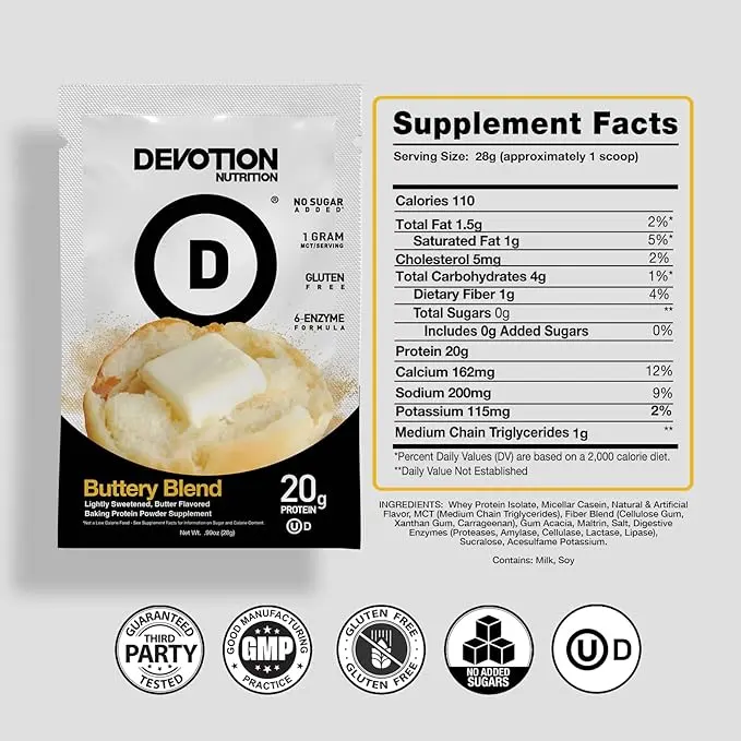 5. Devotion Nutrition Buttery Blend Flavor Protein Powder Sample Pack - Gluten Free, Keto Friendly, No Added Sugars | 1g MCT | 20g Whey & Micellar Protein