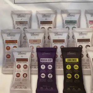I love these protein powder packs while traveling. They are so convenient and allow me to bring a variety of flavors. They mix up great with water in a blender bottle.