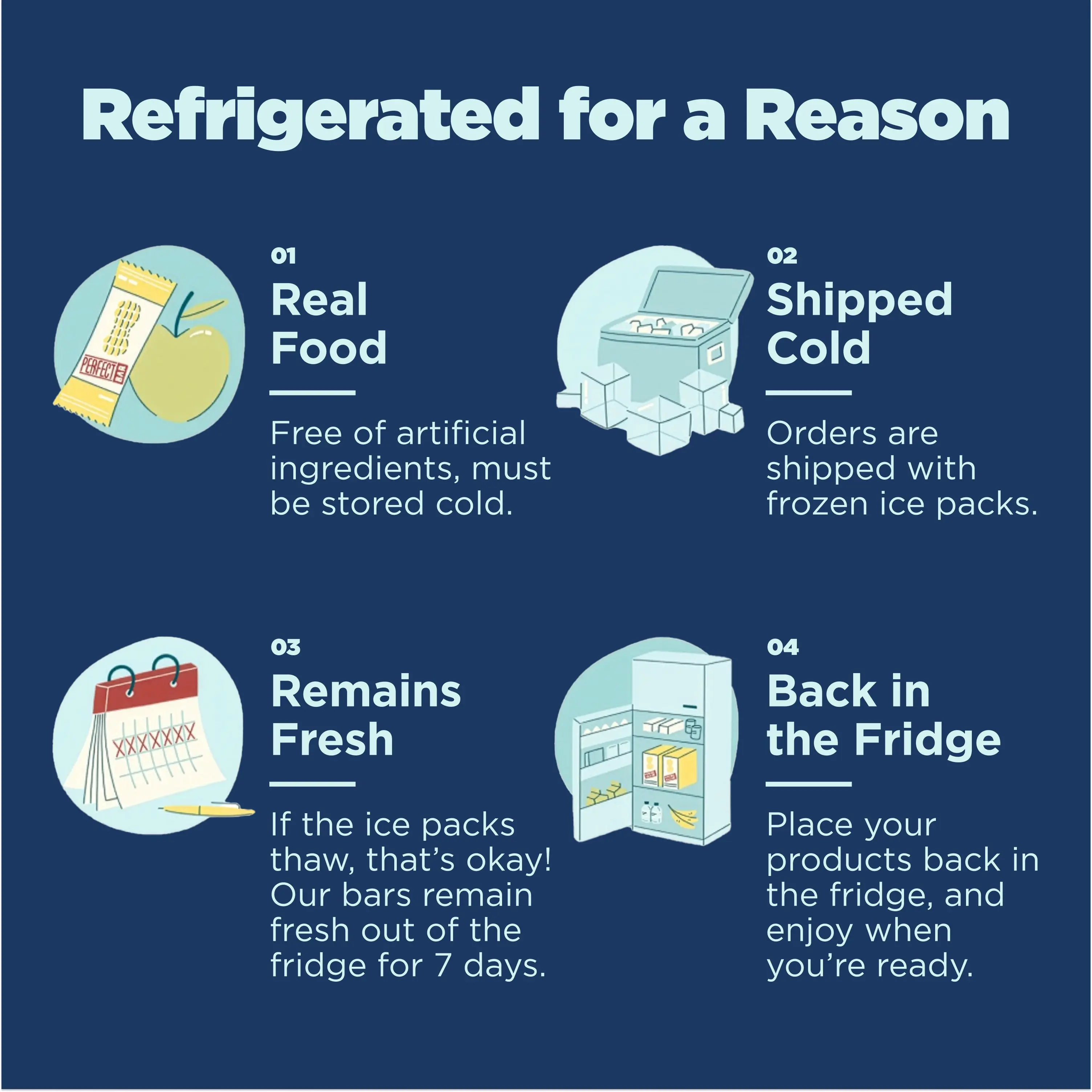 Perfect Bar Protein + Prebiotics Chocolate Mint Crunch delivers 20g of high-quality protein without compromising on taste or ingredients. Experience a satisfying, soft and crispy texture, bursting with flavors of refreshing cool mint, rich dark chocolate, and freshly ground peanut butter. Crafted with grass-fed whey protein, chosen for its superior amino acid profile, it supports muscle recovery and enhances satiety while helping you effortlessly meet your daily protein goals. Beyond protein, Chocolate Mint Crunch features 6 grams of fiber, including 3 grams of prebiotic fiber, thoughtfully included to support digestive health. Packed with 20+ superfoods and sweetened only with organic honey, Protein+ is fueled by clean ingredients, free from artificial flavors, colors, preservatives, or sugar alcohols. It's also Gluten-Free, non-GMO, Kosher, and has a low glycemic index to help keep you fuller, longer. Because real food deserves real freshness, our bars are stored in the fridge, ready to serve as a versatile meal replacement, an energizing breakfast on the go, a nutritious snack, or an effective post-workout recovery solution. Long day ahead? Rest assured, our bars remain fresh out of the fridge for up to 7 days and can be re-refrigerated if not consumed.