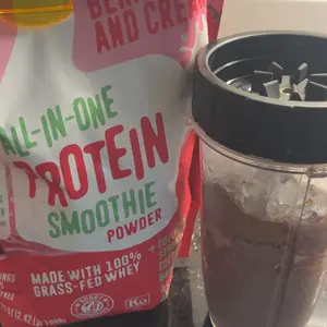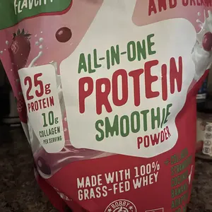 Ditch your blender and try my complete protein smoothie with 25g of protein. Just scoop into your favorite bottle with your milk of choice and shake. We used real, organic strawberries and cranberries for this smoothie. The flavor and texture are dreamy and creamy. Instead of stocking your kitchen with protein powder, collagen, fruit, and more—now you can get it all in just one scoop for only $2.99 per smoothie!