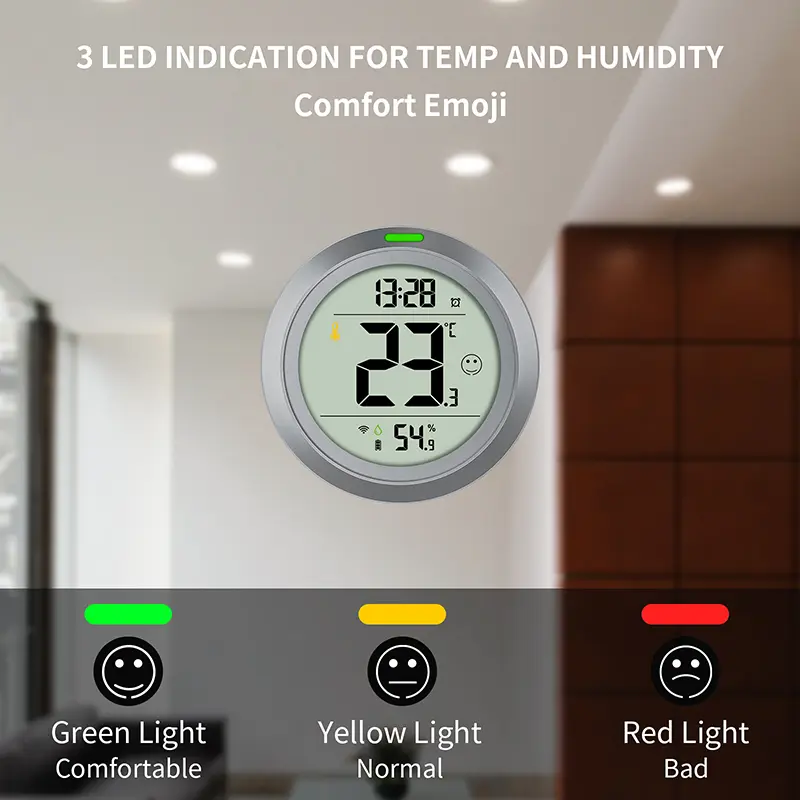 ·Multi-Functional Design:Features a calendar, date, and alarm functions, plus a comfort level display with indicator lights.
