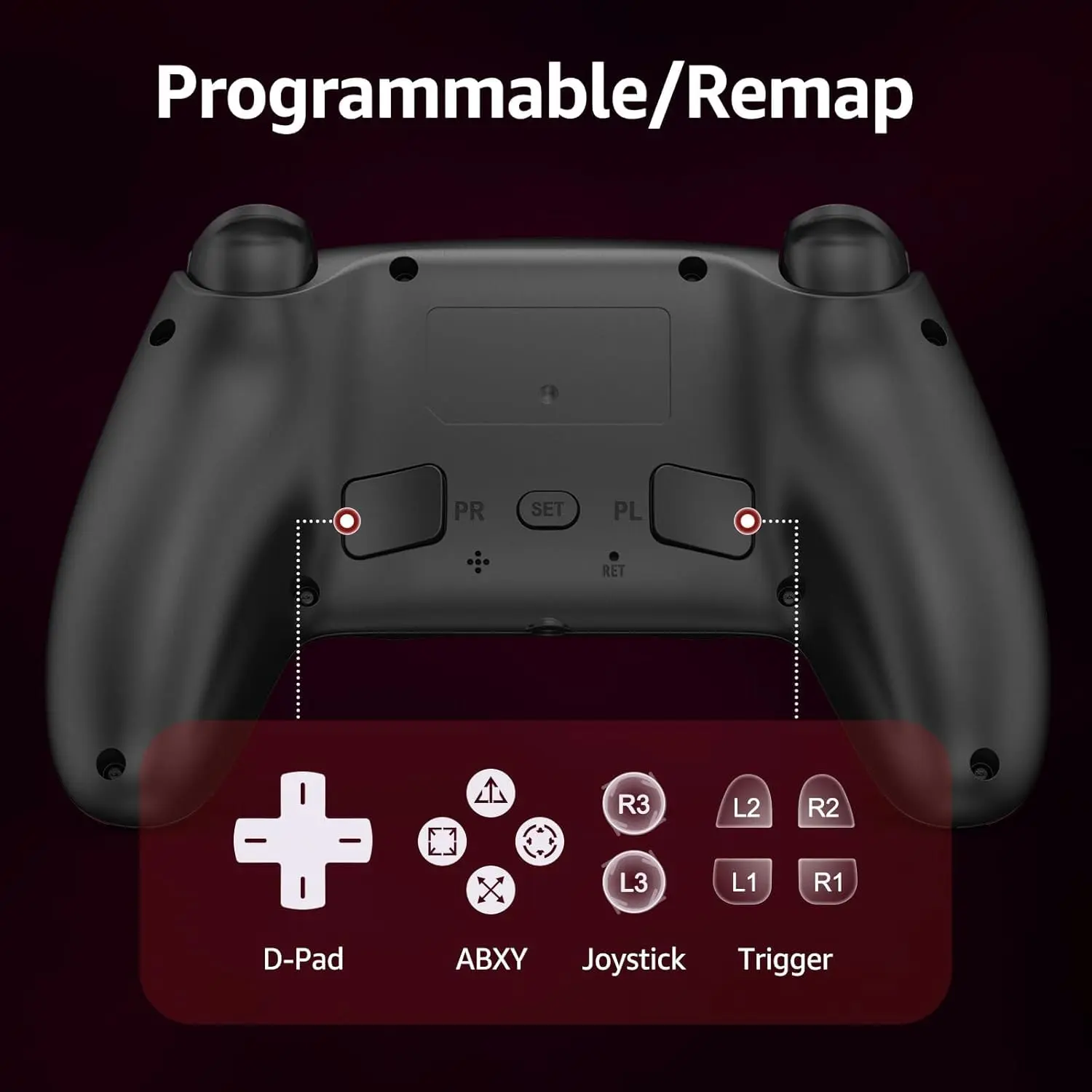 【2 Buttons】The programmable control gamepad for PS-5 features two mappable buttons (paddles) for customized control