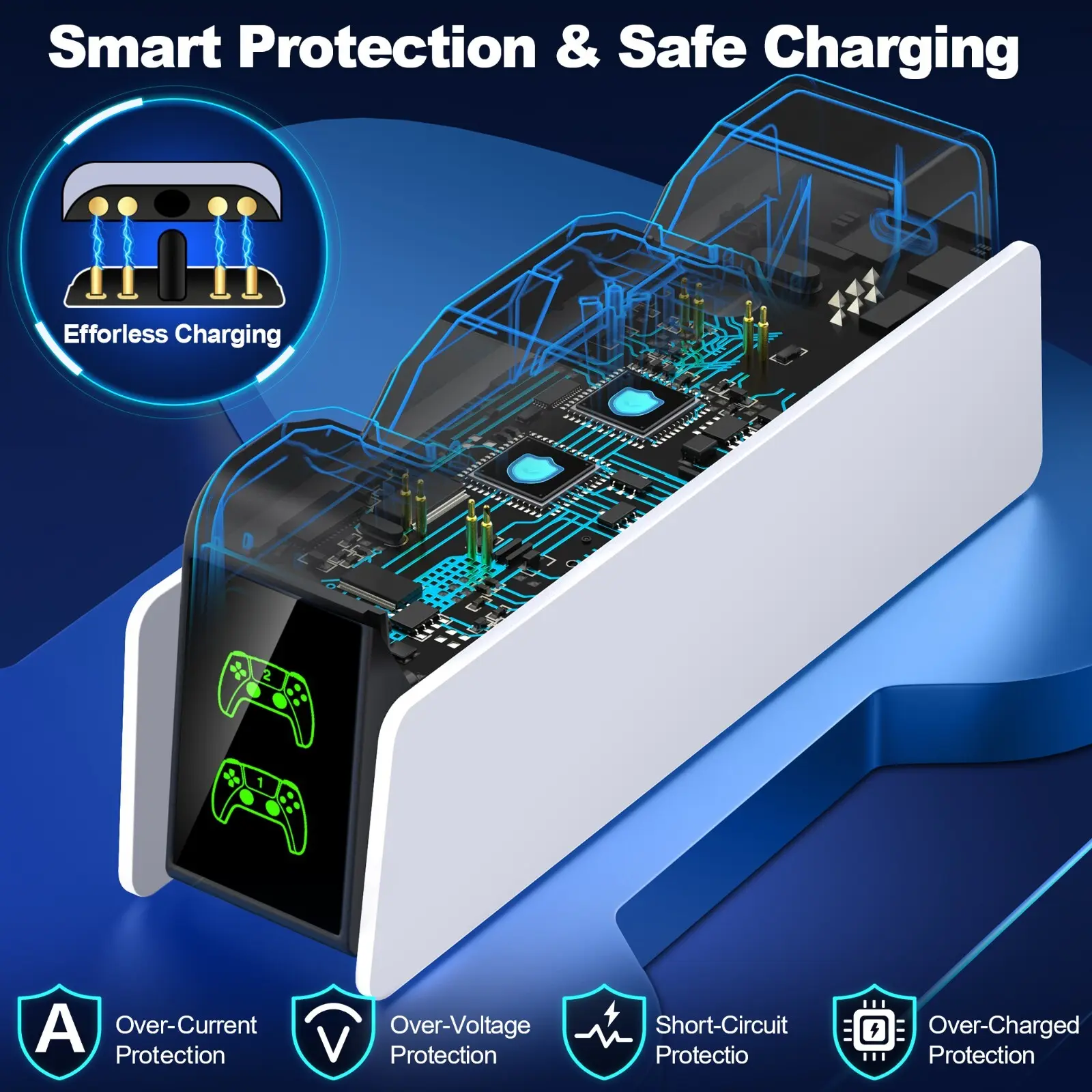 Charging protection & LED charging indicator: There is an intelligent protection chip in the PS5 charging base to prolong the life of the controller. You will not overload the PS5 controller and can even charge it overnight. The PS5 charging station LED indicator clearly shows the charging status. The red indicator on the charging base indicates that the PS5 controller is charging. The green indicator on the charging base shows that the PS5 controller is fully charged or on standby.