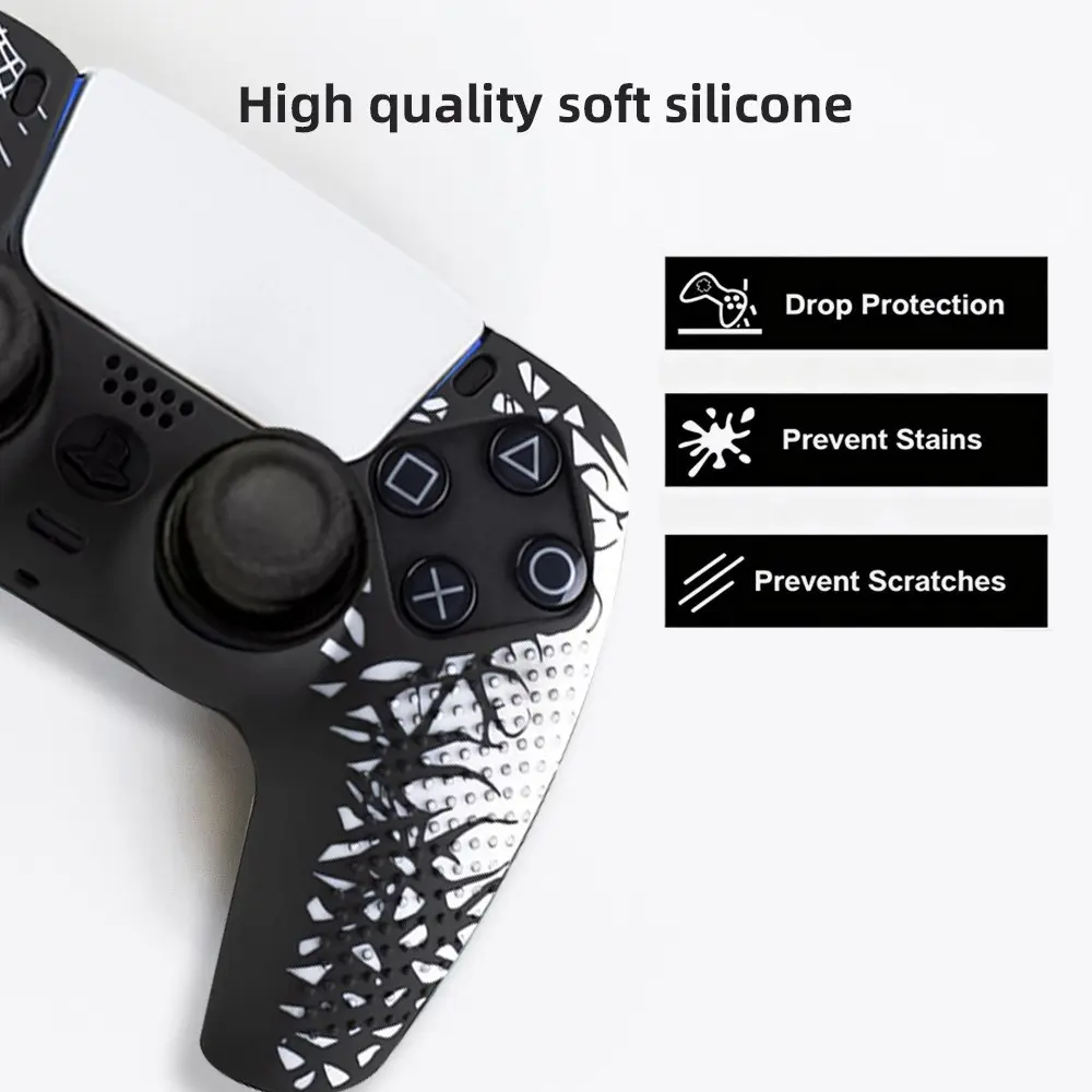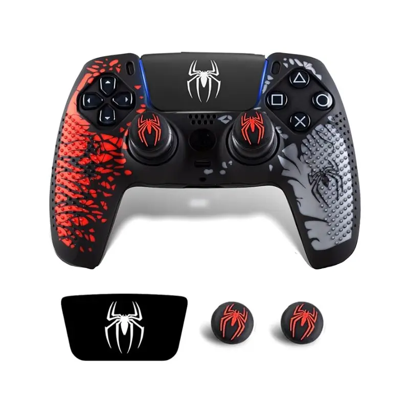 Ps5 Controller Protective Case, Anti-Drop Design, Spider Full Set with Two Joystick Caps + Stickers, Durable Ps5 Accessory