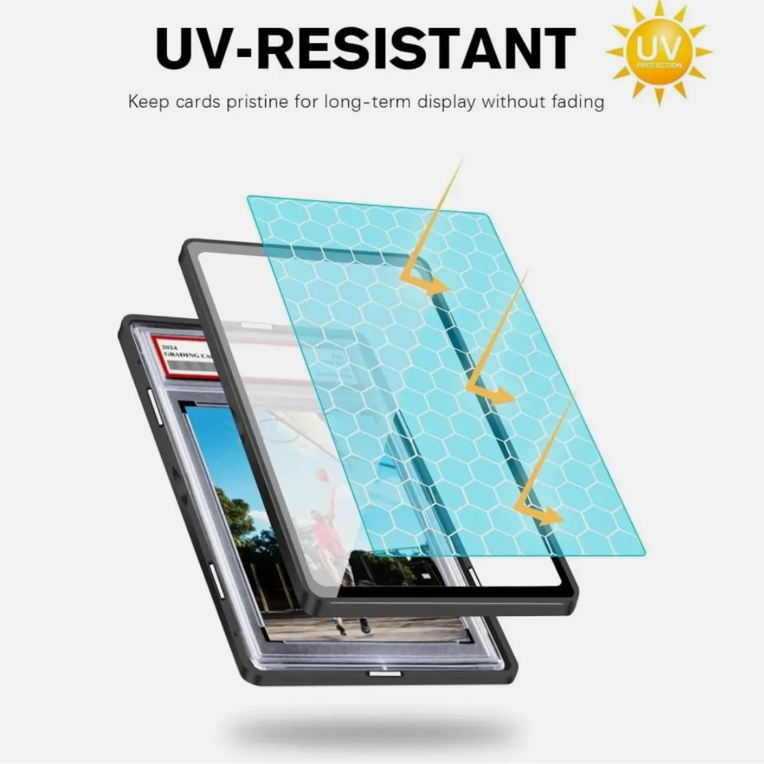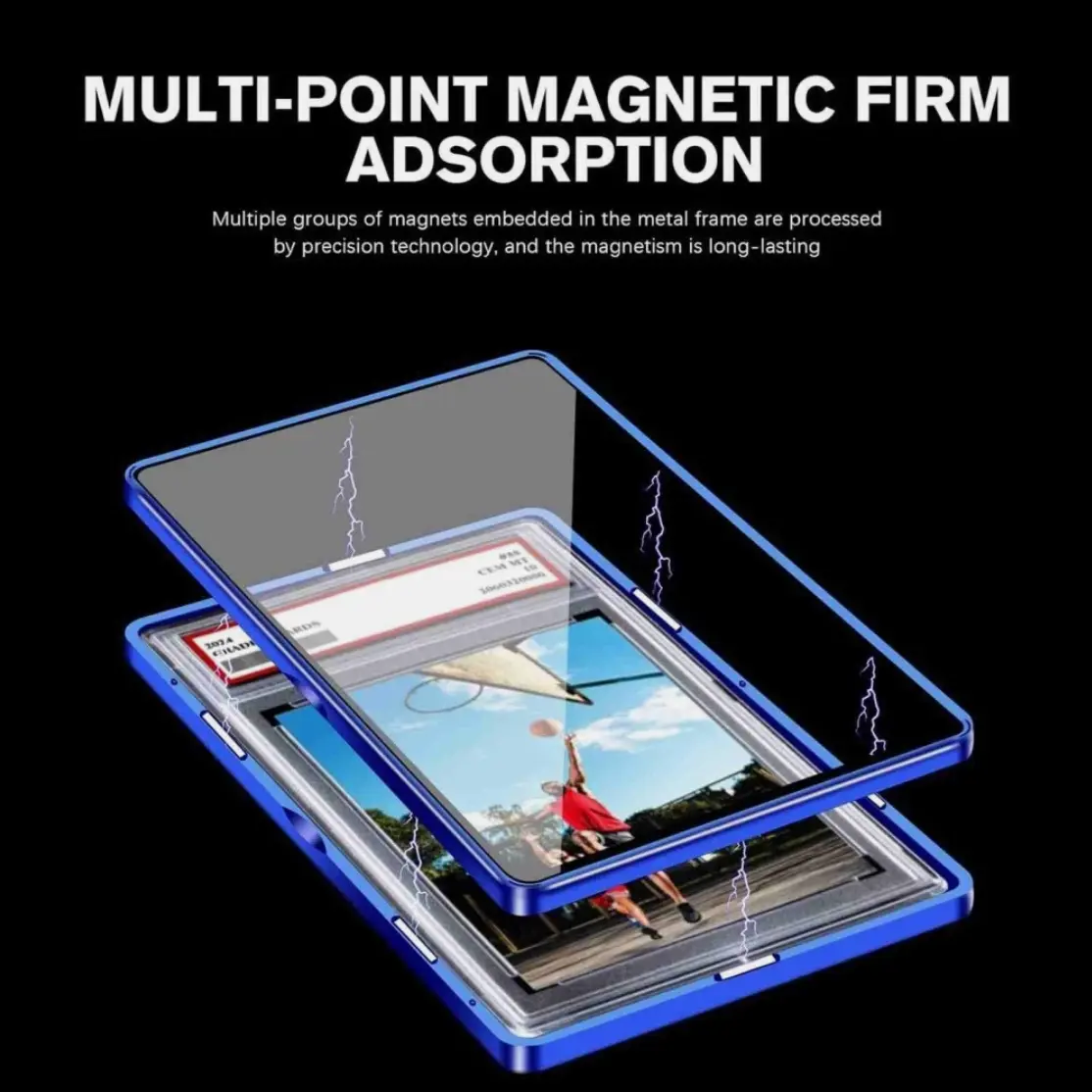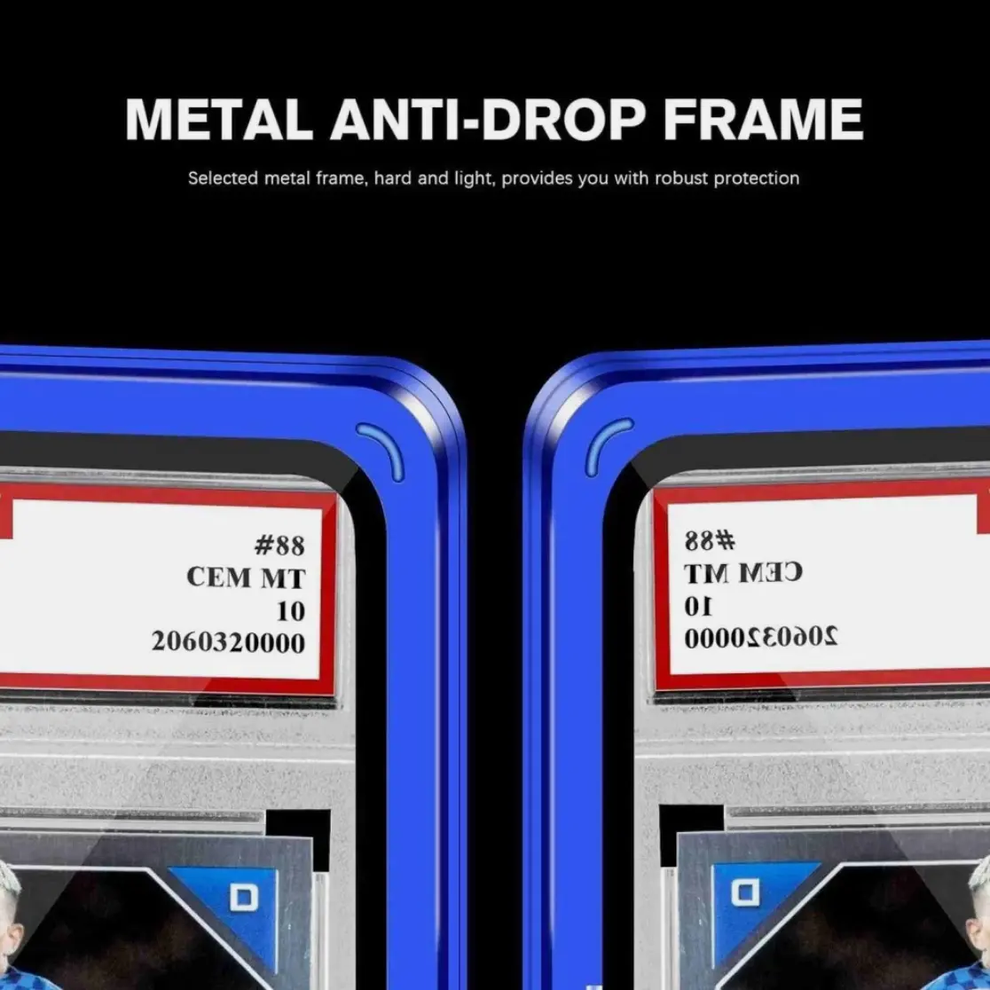 ·Our graded card protector features a metal frame and high aluminum glass. 🛡️ It offers robust protection against scratches and UV rays, keeping your cards in pristine condition. Compatible with PSA, CGC, Soccer, Basketball, Baseball, MTG, TCG cards, and more.