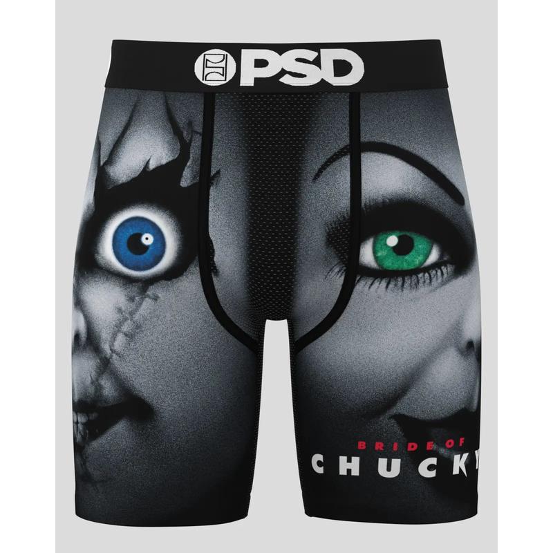 Double the terror, double the stitches. This style from Chucky x PSD features everyoneâs favorite chaotic couple. The Chuckyâs Bride briefs include our ultra-comfortable Signature WaistBand, a breathable MicroMesh pouch, and four-way stretch. The PSD 7â Standard Length Briefs won't roll or ride and were built for everything, from everyday wear to your toughest workouts.