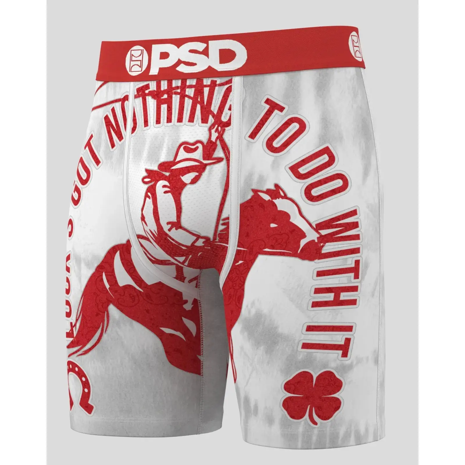 These PSD Men’s Boxers bring the perfect mix of Western, country, and rodeo vibes with a bold cowboy and lucky clover design. Whether you’re chasing good luck or rocking that cowboy energy, these PSDs are soft, breathable, and built for comfort. Perfect for any country boy, rodeo fan, or cowboy at heart. #MensBoxers #PSDUnderwear #WesternStyle #CountryCowboy #LuckyVibes