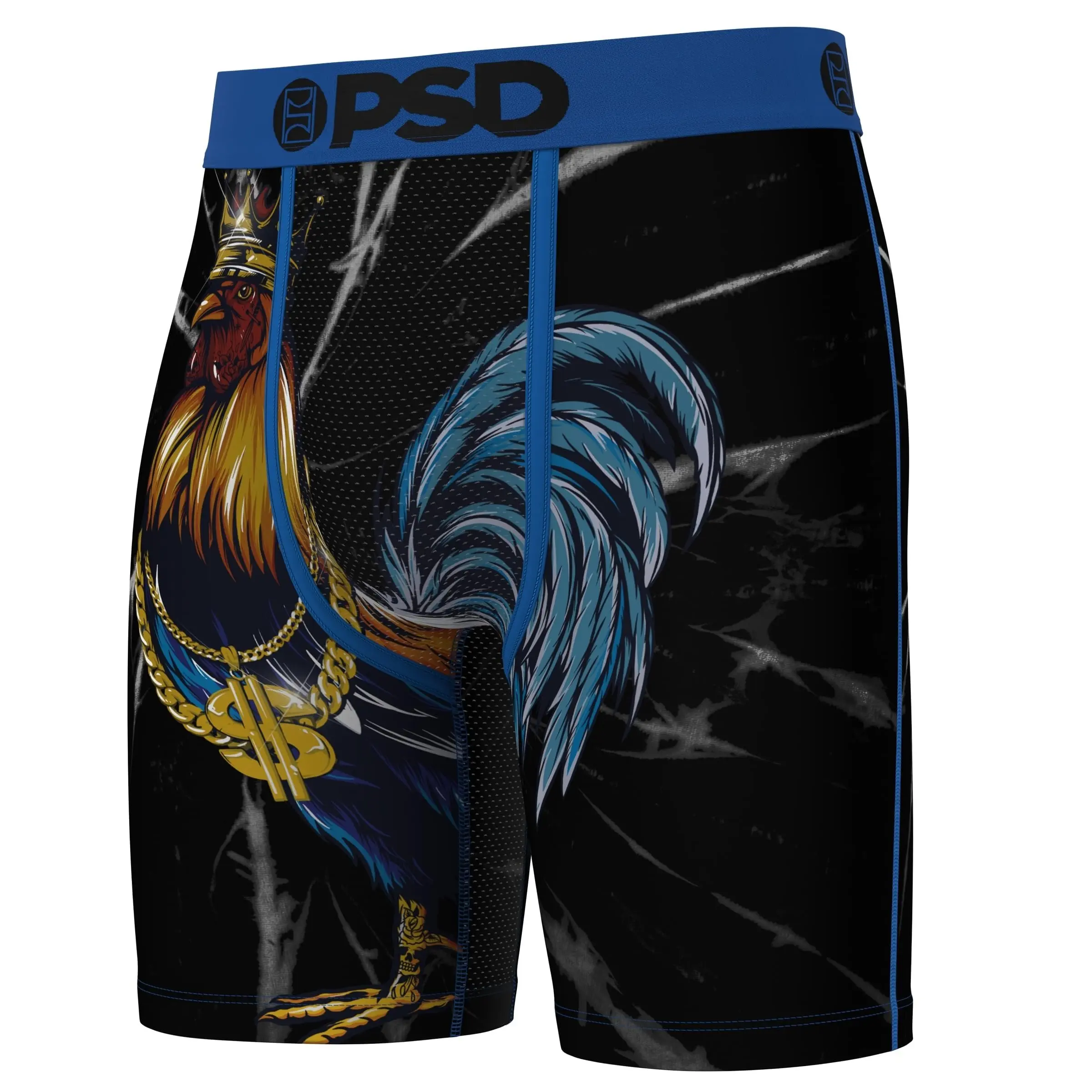 The PSD Underwear Men's Rule the Roost Boxer Briefs 3-Pack combines bold design with everyday comfort. Crafted from a breathable, moisture-wicking fabric, these boxer briefs keep you cool and dry throughout the day. The wide, extra-soft microfiber and elastic waistband, featuring the iconic PSD logo, ensures a secure fit without digging in. Designed with flatlock seams, they provide durability and reduce irritation, making them suitable for both workouts and daily wear. With their vibrant rooster-themed design, these boxer briefs add a touch of personality to your essentials.