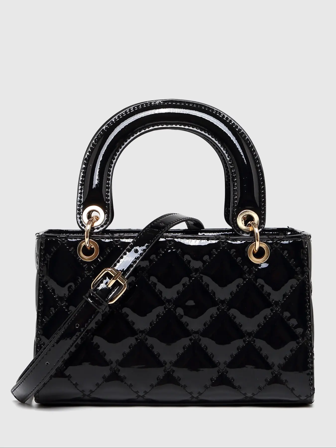 【Unique Texture】: The glossy patent leather finish and quilted geometric pattern set this bag apart from standard leather options.