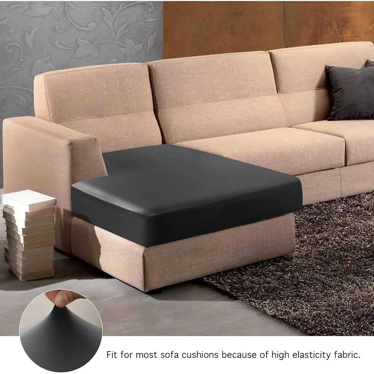 Pu LeatherMeasurement: Our sofa cushion slipcovers are fastened by an elastic band and are also available for a T-cushion and L-cushion.Slipcovers measures as follows, Length: 54~68 inches, Width: 36~39 inches, Thickness 2~9 inches, Please measure your sofa cushion before purchasing.PU Leather Fabric: Adopting premium water-proof PU leather fabric, which have great durability and flexibility, suit for most of sofa cushions.Also match your expensive leather furniture.It could be clean by wet towel in wet.Simple design: We choose the most easy way to install the cushion slipcovers, and the most common color, our leather color could match most sofa colors.Function: It is a great option for the family with pets and kids.They could protect your sofa cushion from tears, daily stains.It is also a great choice for the family whose sofa cushion are suffering peering or destroyed.You could repair it with less expense.Promise: If you have any problems once you received it, please contact us with message, we will try our best to satisfy you.