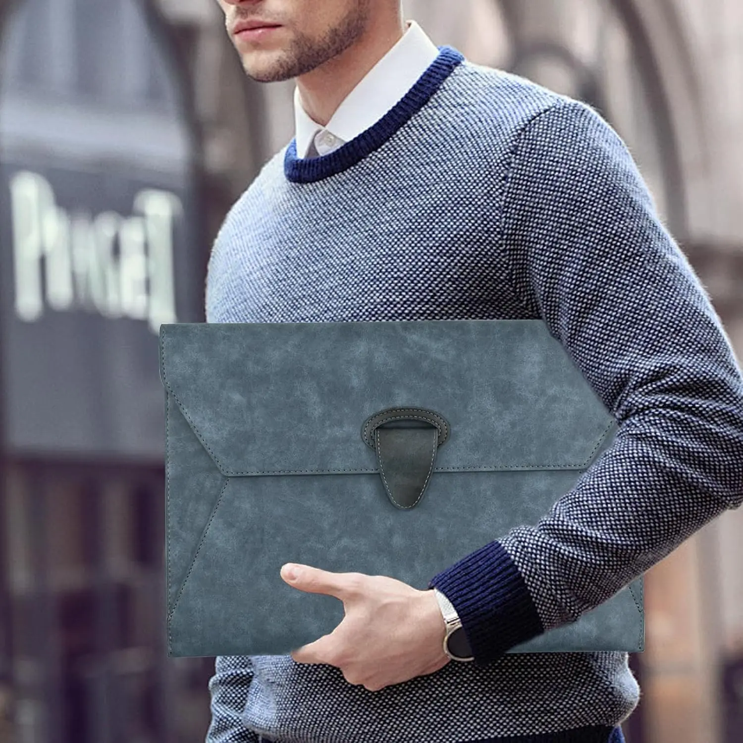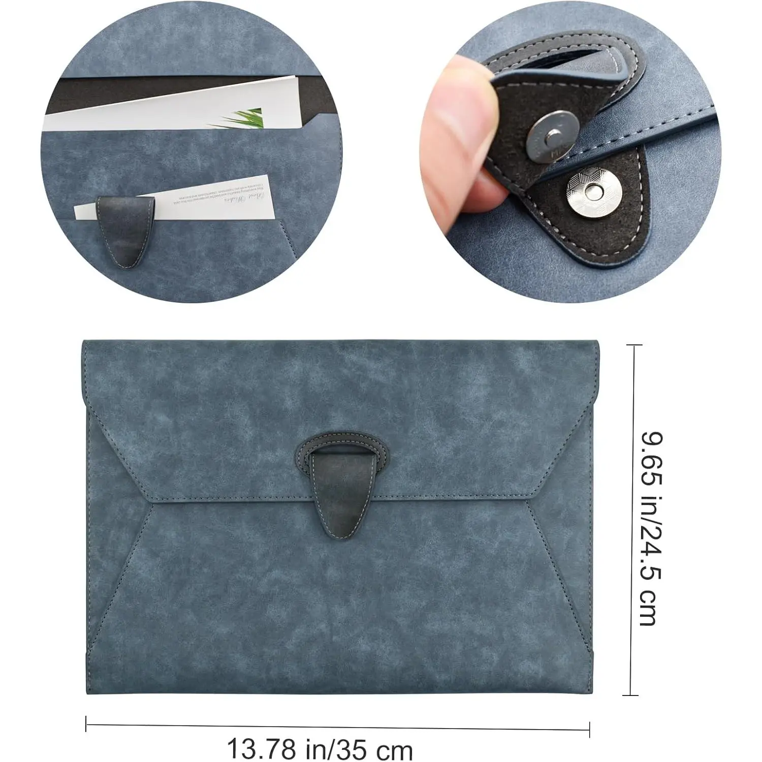 [Reliability] The leather filing envelope is strap closed, and it has a button to seal. The dual safeguard ensures its for important documents from slipping out.