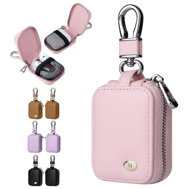PU Leather Mini Earbuds Case For AirPods Pro 4/3/2/1/Samsung Galaxy Wired Earbuds,Portable Dustproof & Anti-scratch Travel Wireless Earbuds Bag,Protective Storage Pouch Bag with Mesh Pocket & Keychain