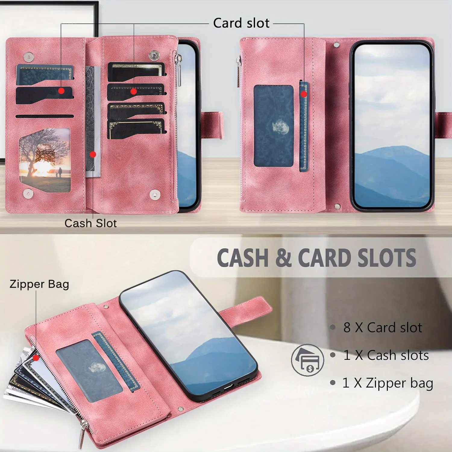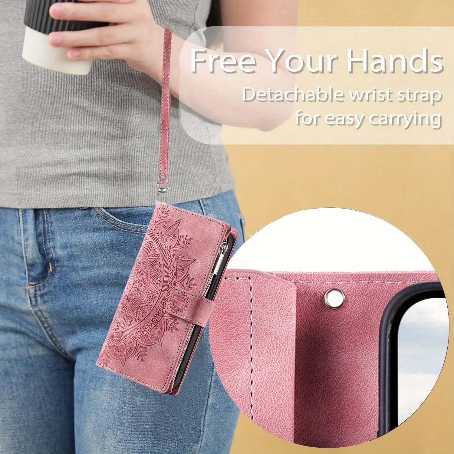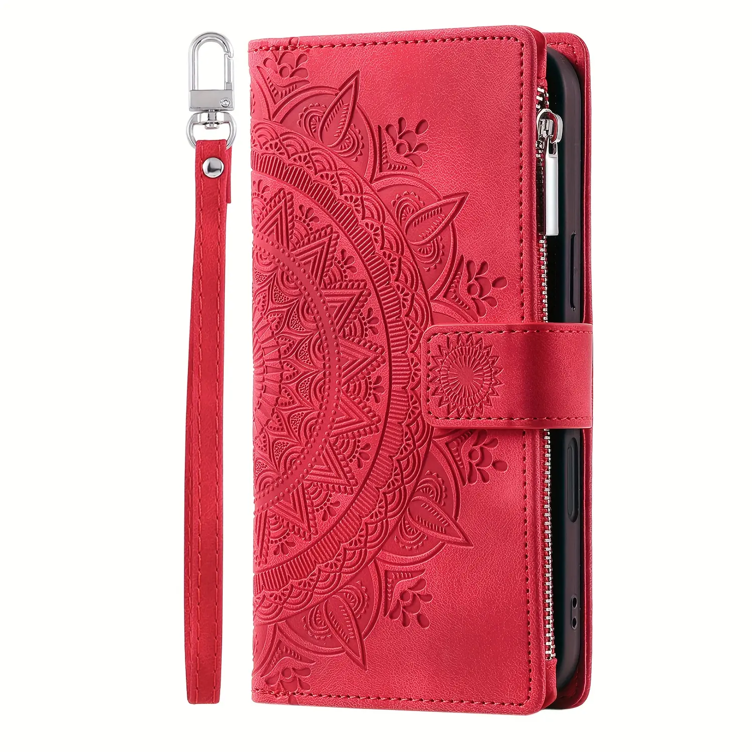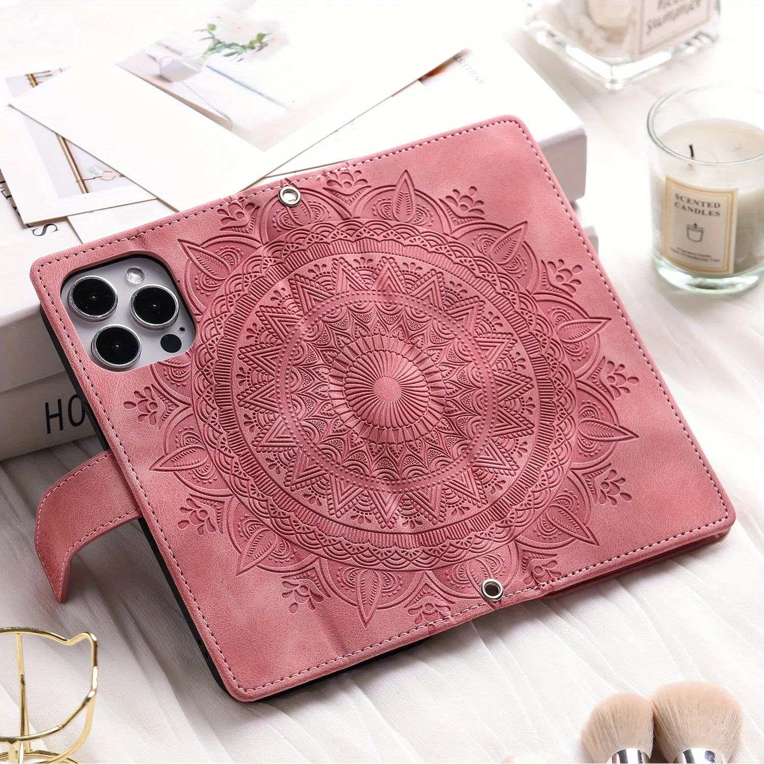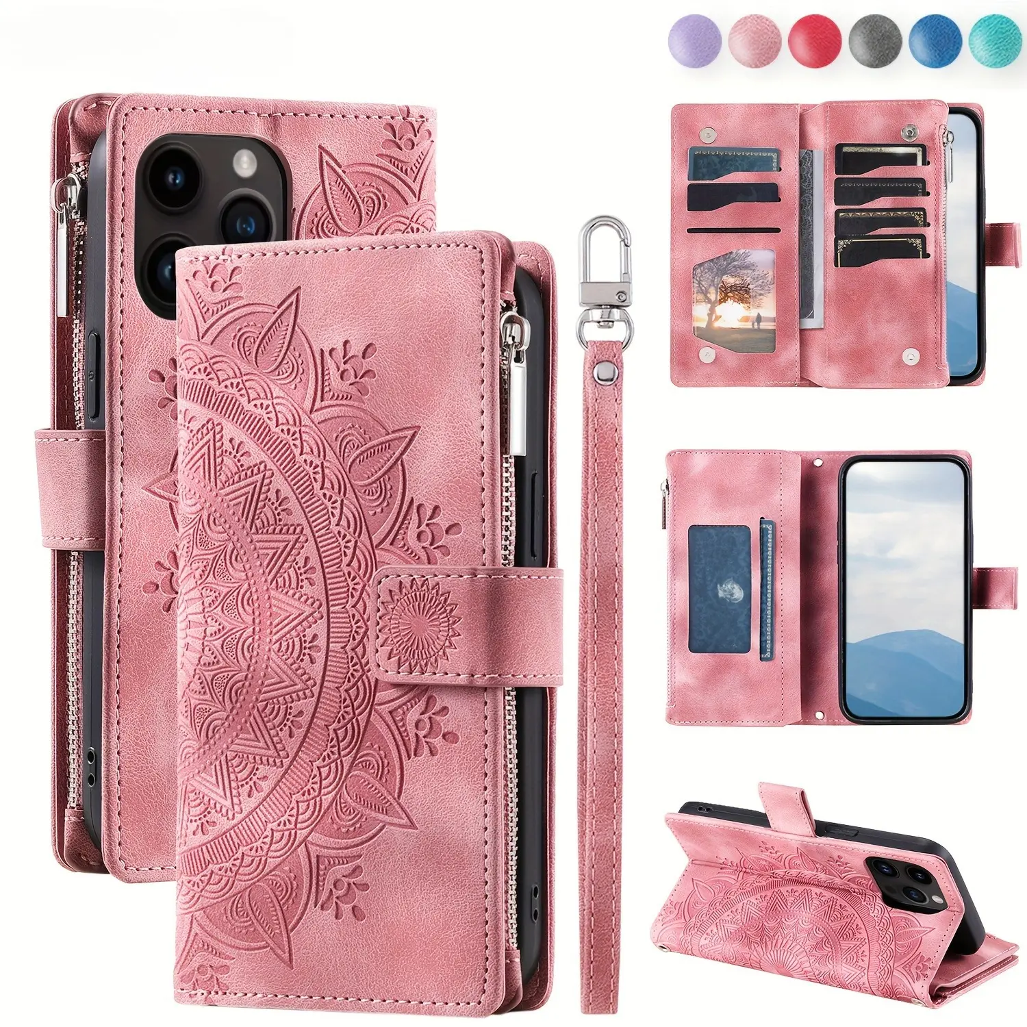 Pu Synthetic Leather Case for Various Iphone Models, Including 17, Air, 16e, 16, 15, 14, 13, 12 Mini, 11 Pro, X, Xs Max, Xr, 8, 7 Plus, Se, 5g From 2023 and 2020, Embossed Flower Design, Wallet with Card Holder