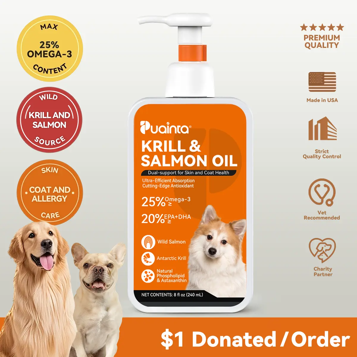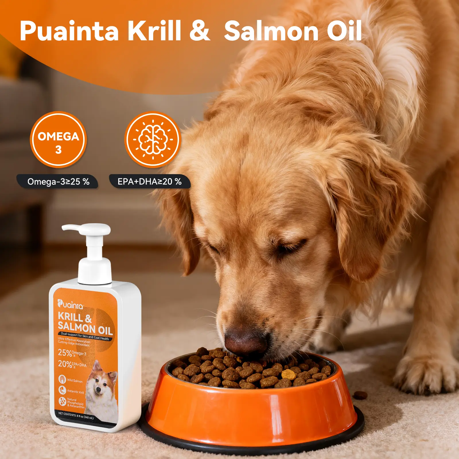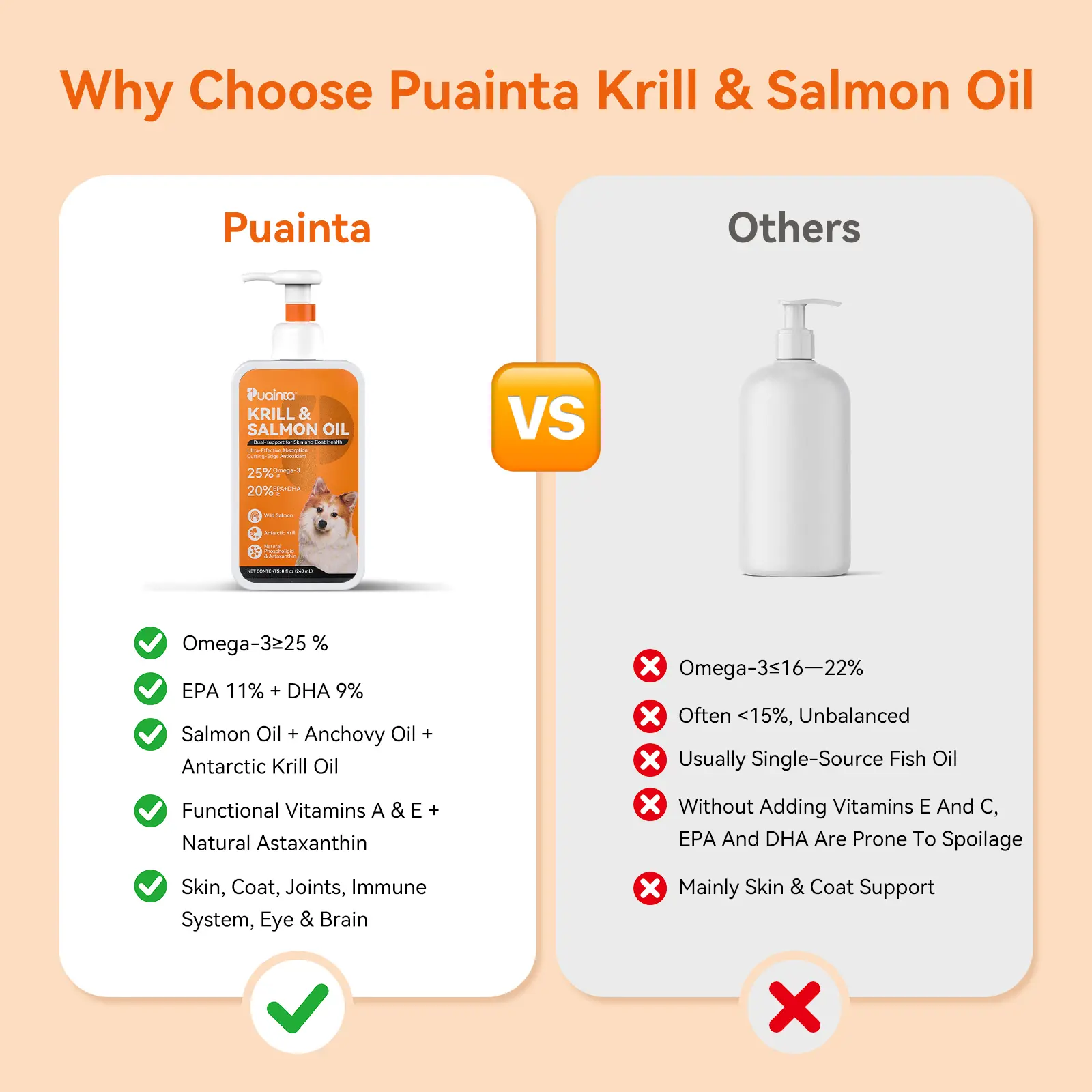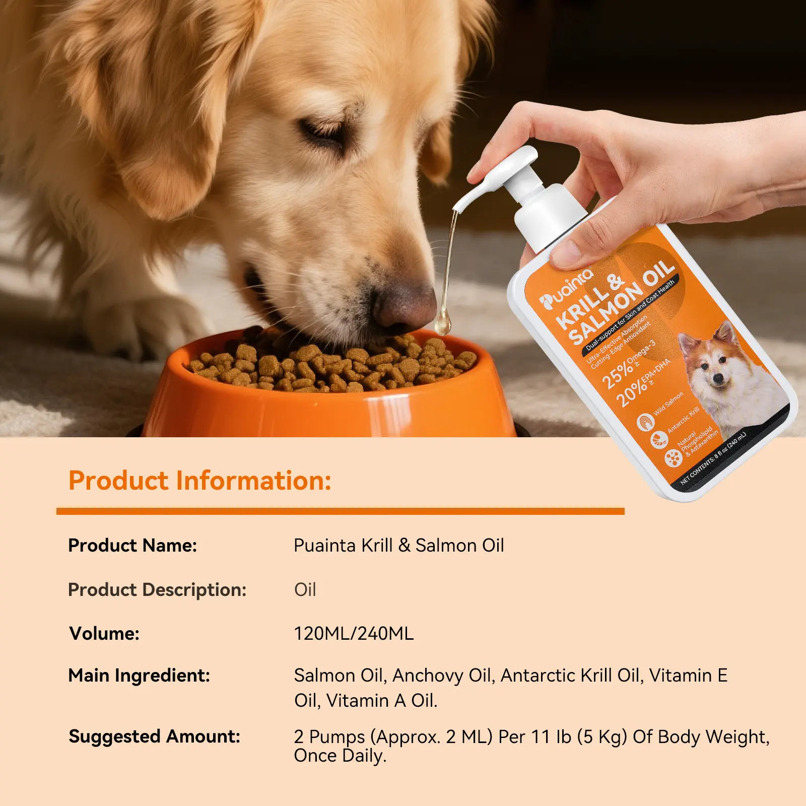 Rich in Omega-3, EPA & DHA: Puainta krill & salmon omega 3 fish oil for dog is packed with omega-3 fish oil for dog, promoting healthy skin and a shiny coat for your pets. Ideal for dog itching skin relief!