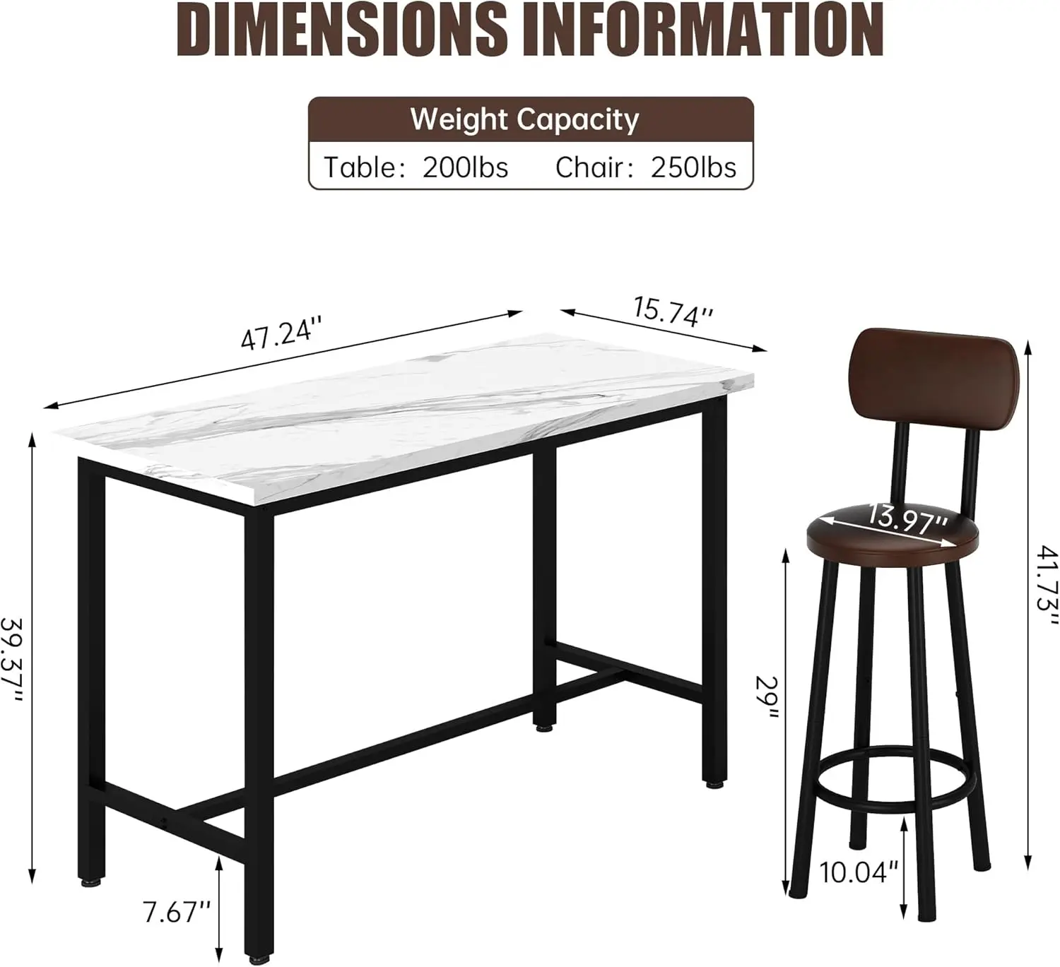 ·【Small Spaces Dining Table Set】Kitchen Tabel Size: 47.24" L× 15.75" W × 39.37"H Weight Capacity: 200 lbs This kitchen furniture set is compact design, two dark brown stools can be put under the table when not in use, save a lot of your inner space.