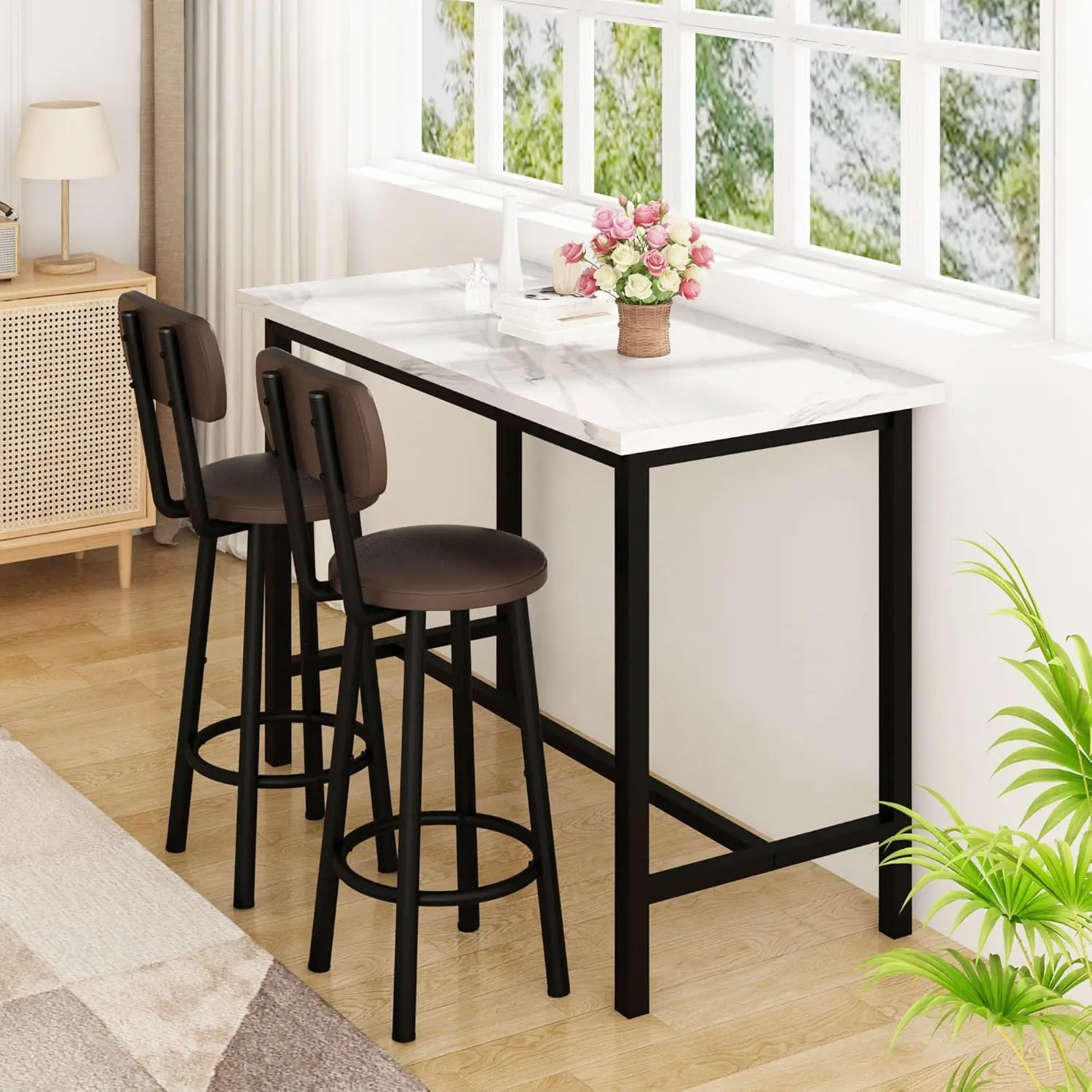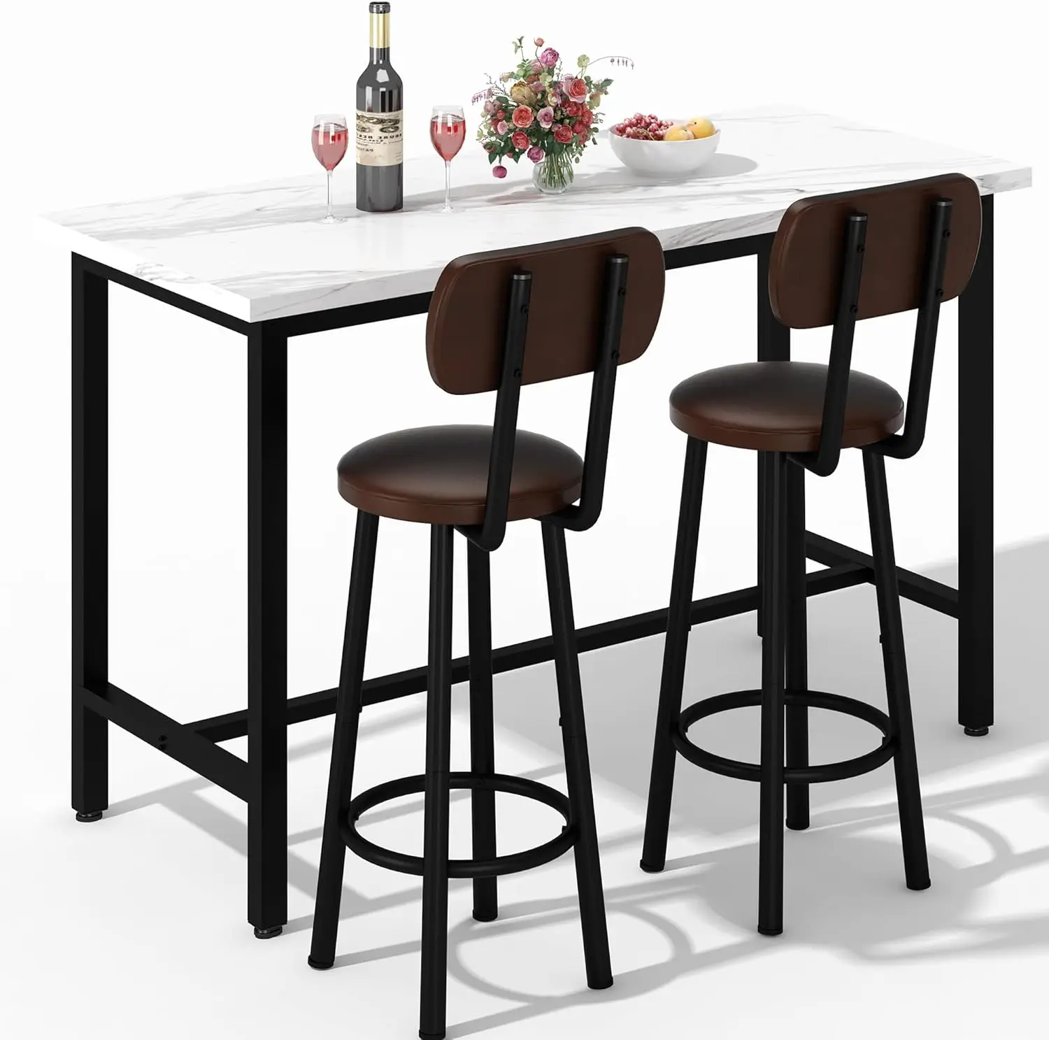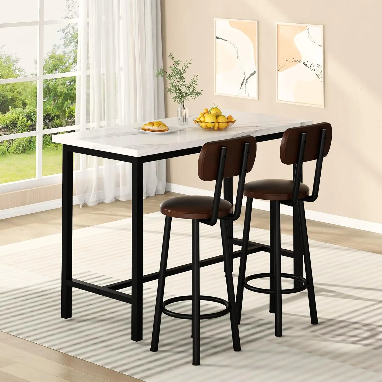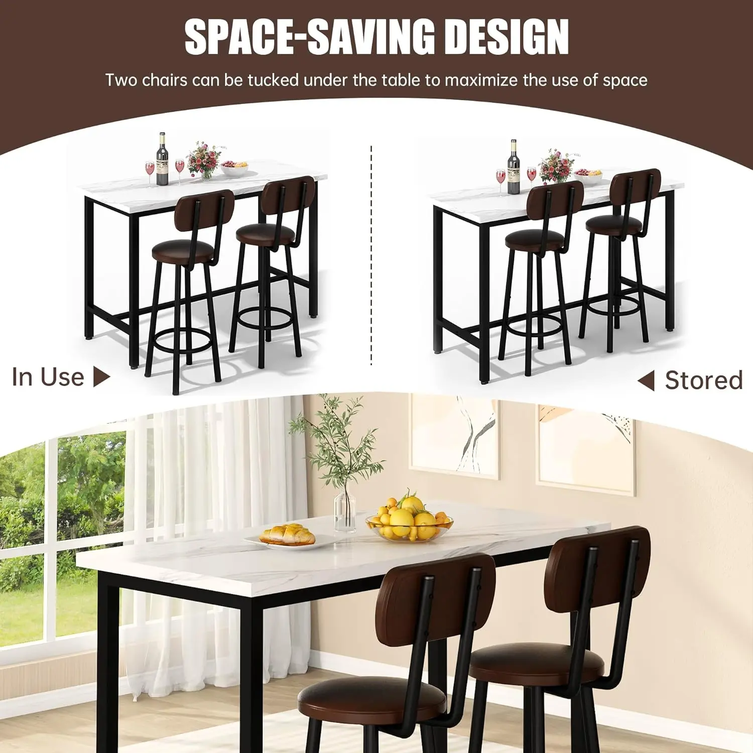 · The Barstool high chair with PU leather backrest and high-density sponge filling inside, can comfortably in the dining time. Non-slip feet mat at the end of the legs, which keeps the floor/ground from damage and scratches. The small kitchen table for 2 is suitable for various occasions and home decoration styles.