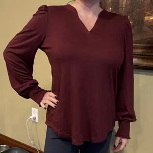 This shirt is so nice! Has little puffy sleeves and fits really well.