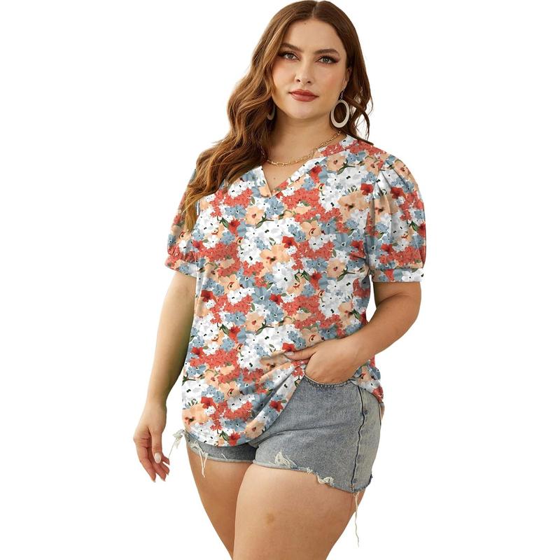 ·: 2024 Updated Pleated Puff Sleeve Tops, V Neck Shirts dressy casual, Curved Hem Tops loose fit. Stylish and classic summer tunic tops