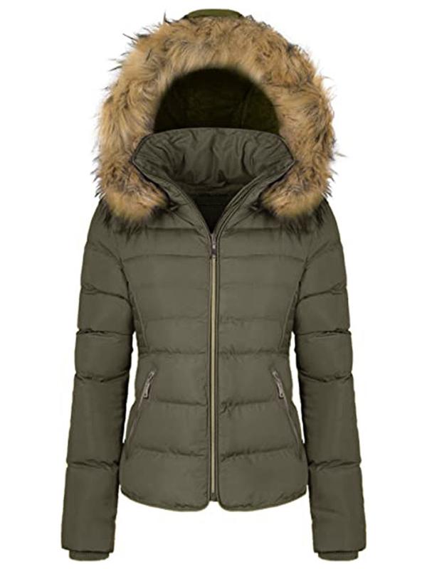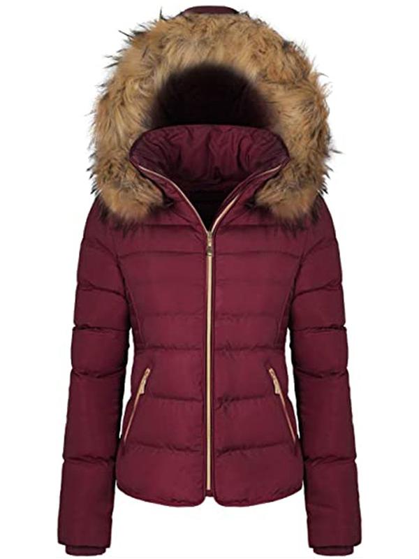 ·Detachable hood with pretty fluffy faux fur trim, fashionable, and charming, and you can just take the hood off when washing the coat.