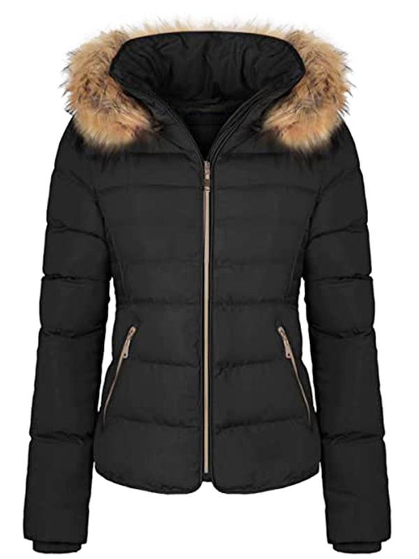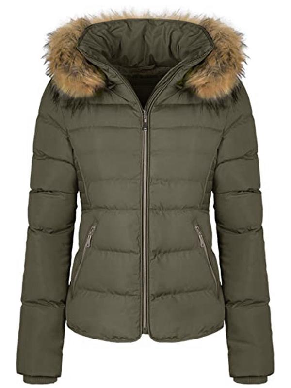 ·The fashionable hooded puffer coat features zippered slanted front hand pockets, full zip-up closure, and elastic cuff, comfortable and stylish.